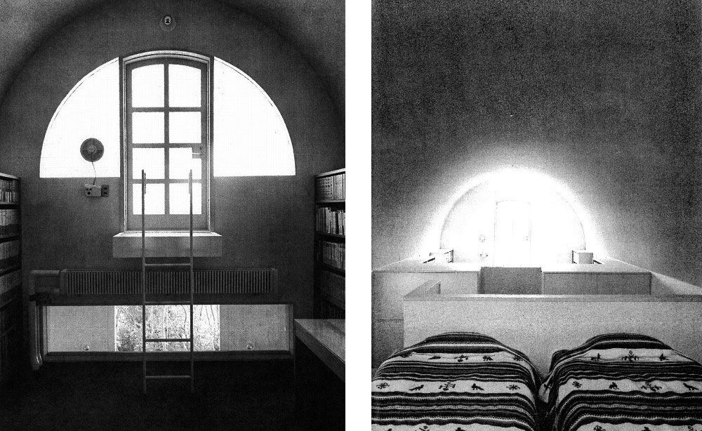 左:矢野邸 書斎内観と屋上出口(『新建築』1976年4月)