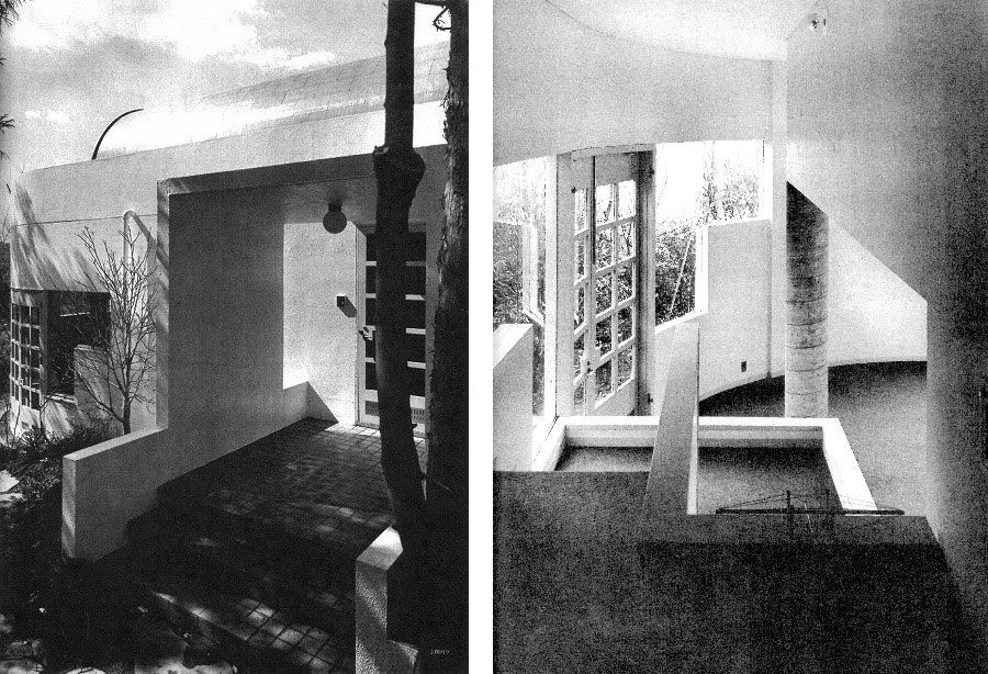 左:矢野邸 玄関ポーチまわり(『新建築』1976年4月)