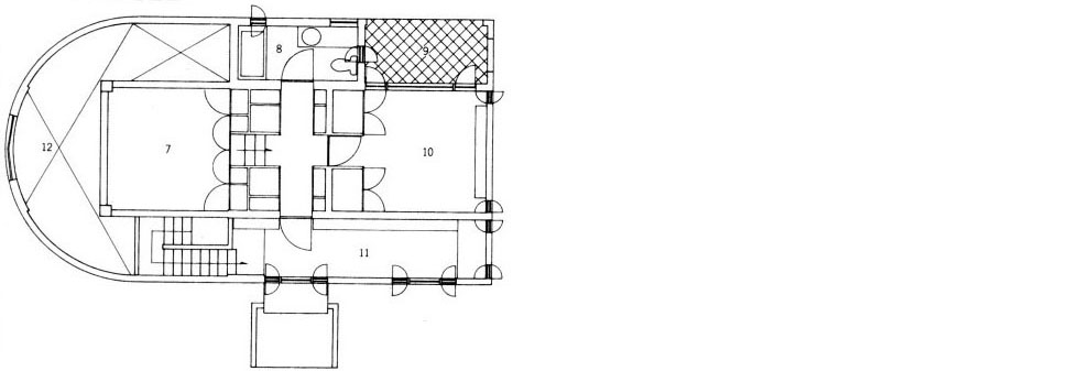 筆者は1981年に、改修工事のため矢野邸に何度か入る機会をもった。竣工後5年を経て外部建具に傷みが目立ったためである。福岡相互銀行増築工事のため九州に移った西岡弘からひき継いだ。新築時に木製で設けられた外部建具枠の多くは、ディテイル感を消すため庇なしの外壁に面一で納められ、壁と同じ白の塗装で仕上げられたため、浸み込んだ雨水で腐食が進んでいた。また、大きな外壁の断熱対策が十分でなかったのだろう、矢野さんはヒーター用の石油代が嵩(かさ)むことをこぼしていた。建具をステンレス製に替えるとともに、窓ガラスを可能なかぎりペアガラスにしたが、どれほどの効果があっただろうか。それはともかく、居間の曲面壁から階段を回って寝室のヴォールトへと、滑らかに連続する空間が湛えていた独特な静謐さの印象はいまも記憶に残る。