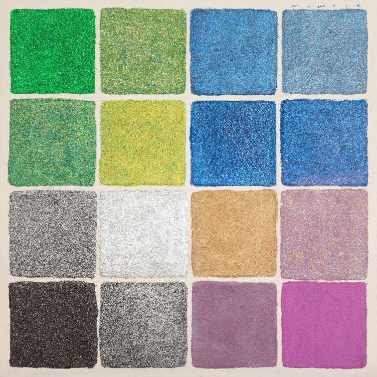 シルクスクリーンの版画では2000年から少しずつラメを使ってきました。蛍光色は紫外線による退色を避ける、ラメを重ねたらさらに紫外線をカットすることができるのではないか、これは面白い。キラキラの版画ができる。