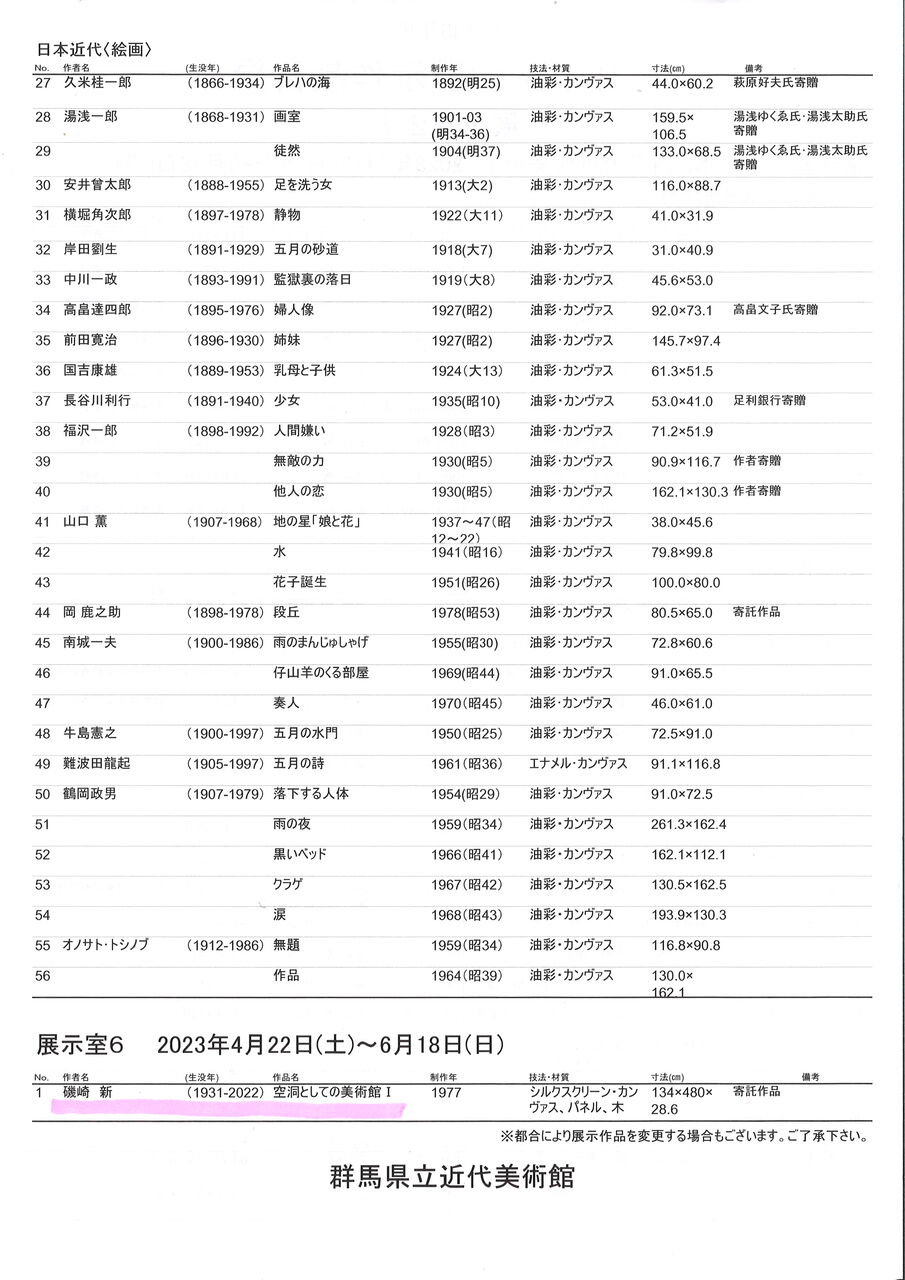 今回取り上げる「空洞としての美術館Ⅰ Ⅱ」はもう少し後でと考えていたのですが、群馬県立近代美術館から4月22日~6月18日に常設展示で寄託中の「空洞としての美術館Ⅰ」を展示するという知らせをいただいたので、会期に間に合うよう今回ご紹介します。