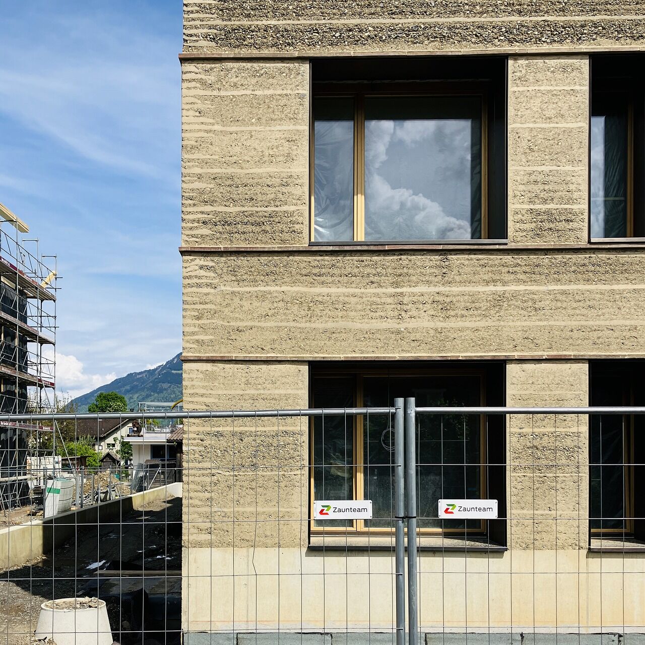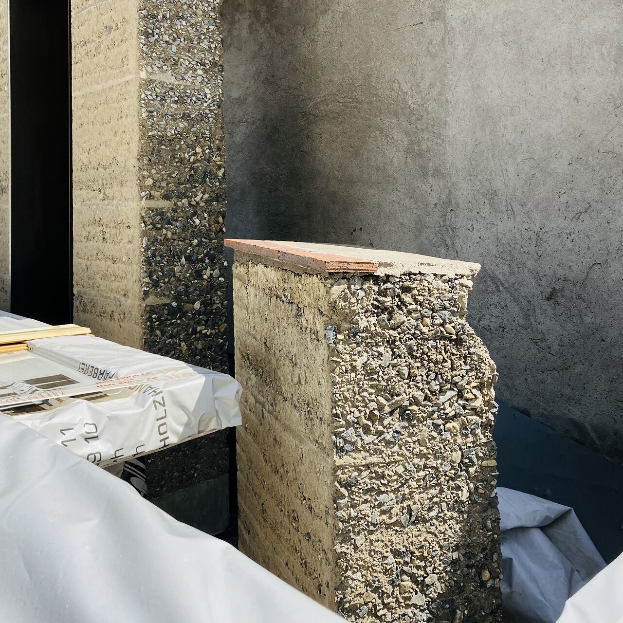 その背景には、この分野の第一人者であるMartin Rauch (マルティン ラオフ)さんが自宅や自社建築でその応用可能性、疑問視されていた耐久性を実証してきたこと。セメントベースではない材料を用いることで、その生成プロセスで発生するCO2を削減できないかというコンクリートの代替建材としての需要。土壁の持っていた吸湿作用による室内環境の見直し。ドイツでは版築工法の法規制が整ったことなど、多方面からの要因があります。