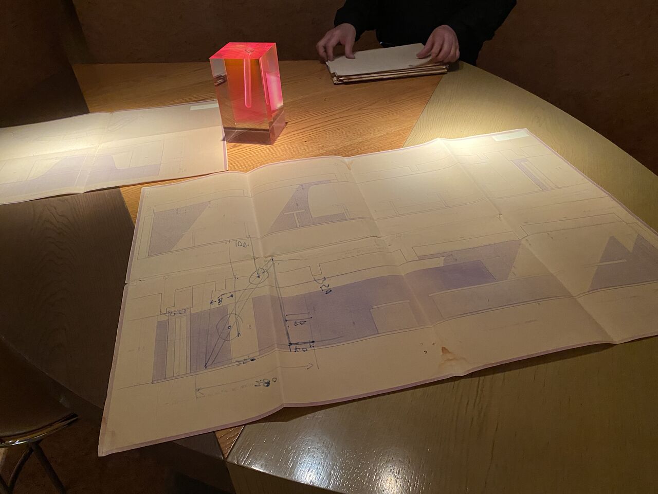 IMG_8069内装に見惚れていると、オーナーの中山昌彦さんが当時の図面を見せてくださいました。本当にありがとうございました。