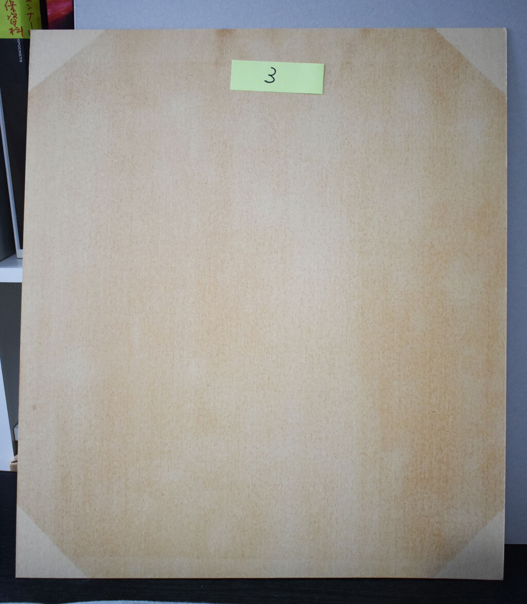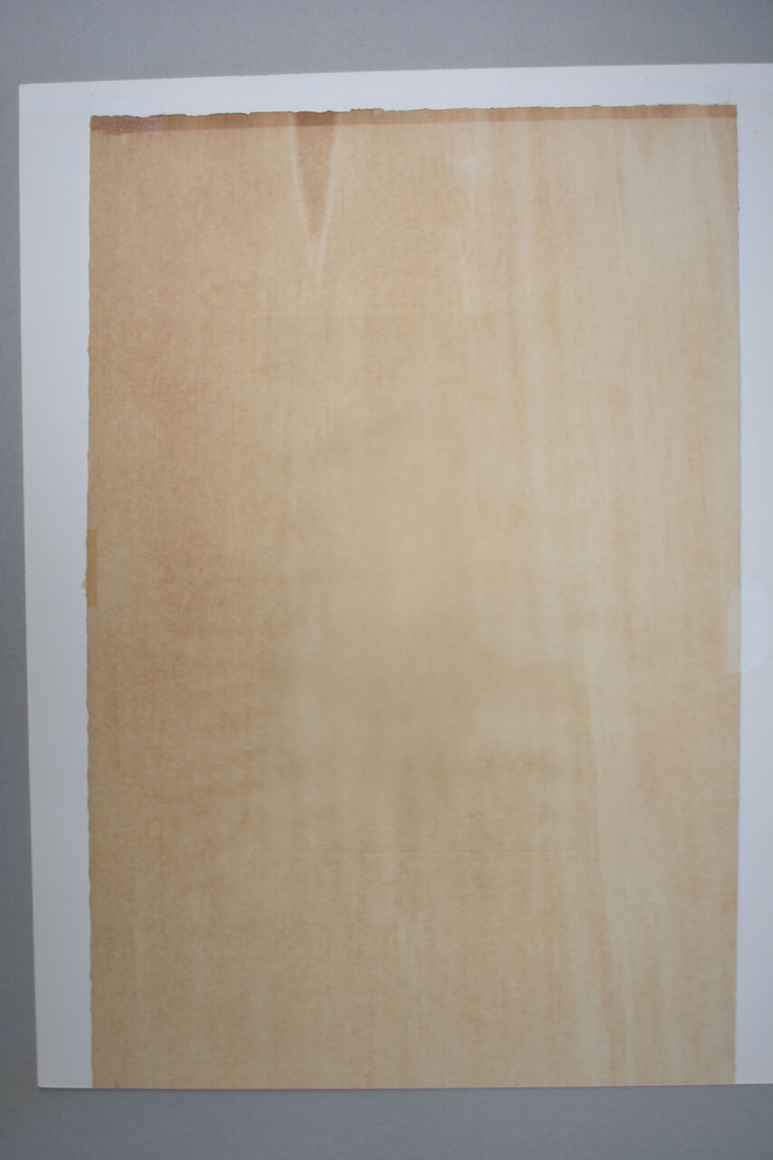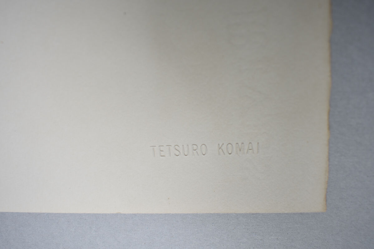 <このシリーズは1964年から65年にかけて制作され、「刷られた紙の裏の凹凸の激しさは、版画用紙を突き抜け、プレス上のフェルトまで切り裂くほどでした。」と作家自身が語っているだけにその刷り部数は少ない。私の問い合わせに対して加納さんから「この作品はエディションとしての限定ナンバーの刷り枚数を刷らず、作家用のA.P.(Artist’s Proof)としてわずか数枚刷ったのみです。」と親切な手紙の返事をいただいた。>