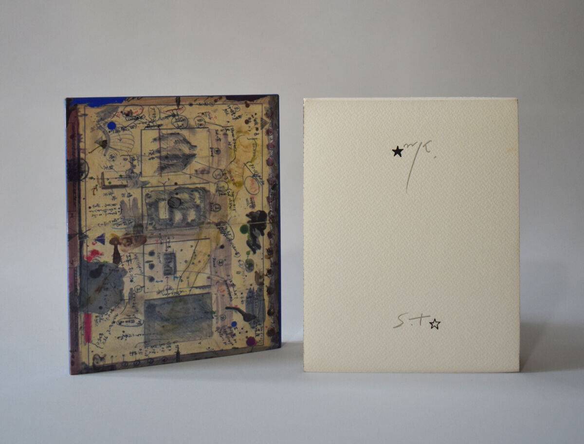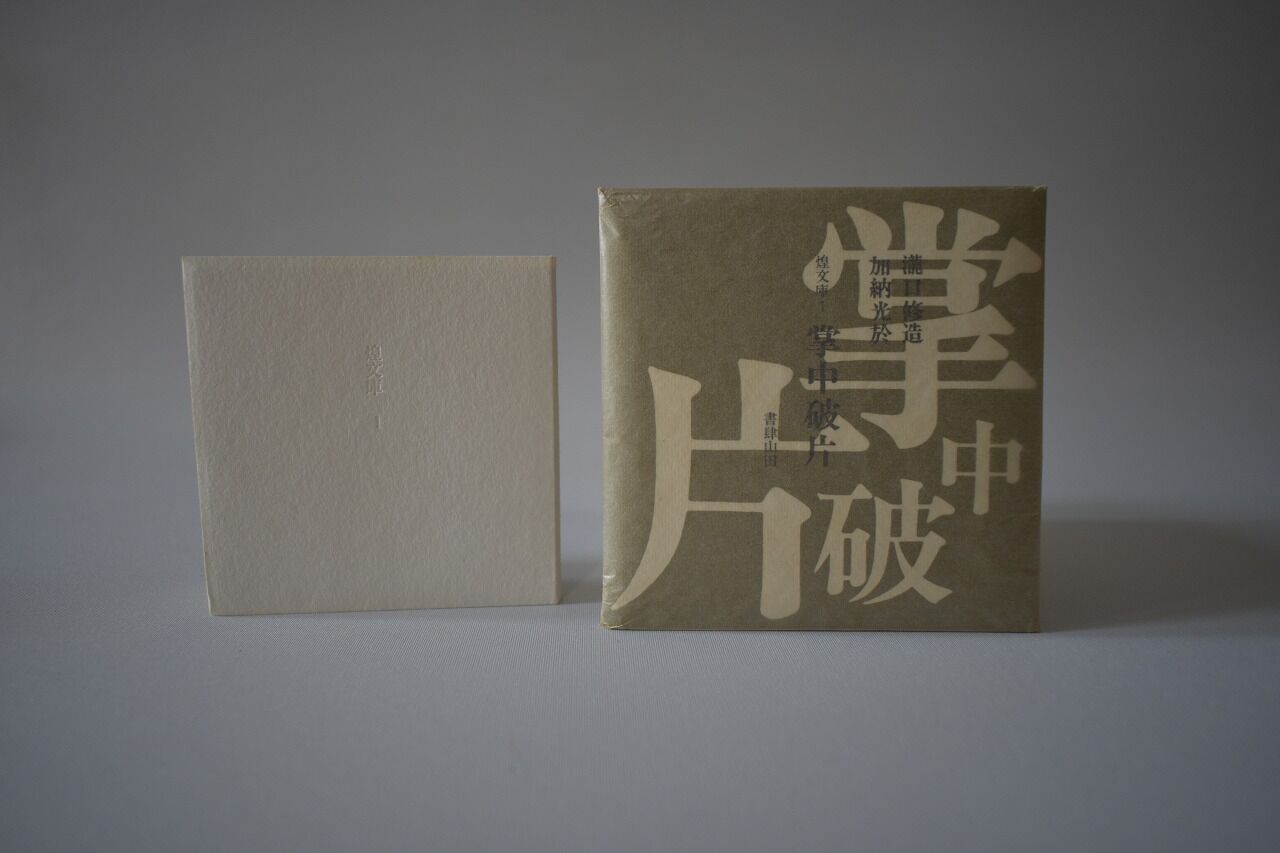 <『掌中破片』は豆本のようなサイズで加納のエンコスティックとメタルプリント併用の作品に瀧口の詩が載っている。晩年の詩的実験とも言うべき「自在諺」の短詩である。>