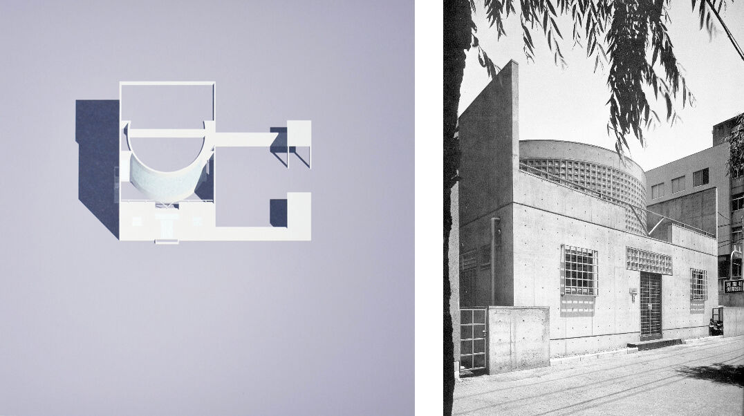 通りからは、ヴォールトの存在が感知されることはない。それはもはや外観に象徴性を与える要素ではなく、都心の隠れ家であり人工洞窟でもある、密かで静謐な闇の空間を抱え込む器として実現された。