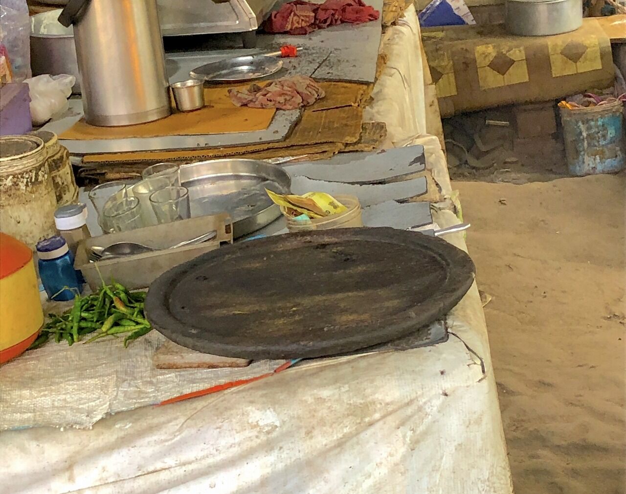 (チャイ屋さんのお盆。いつもこれにチャイが載って来る。)