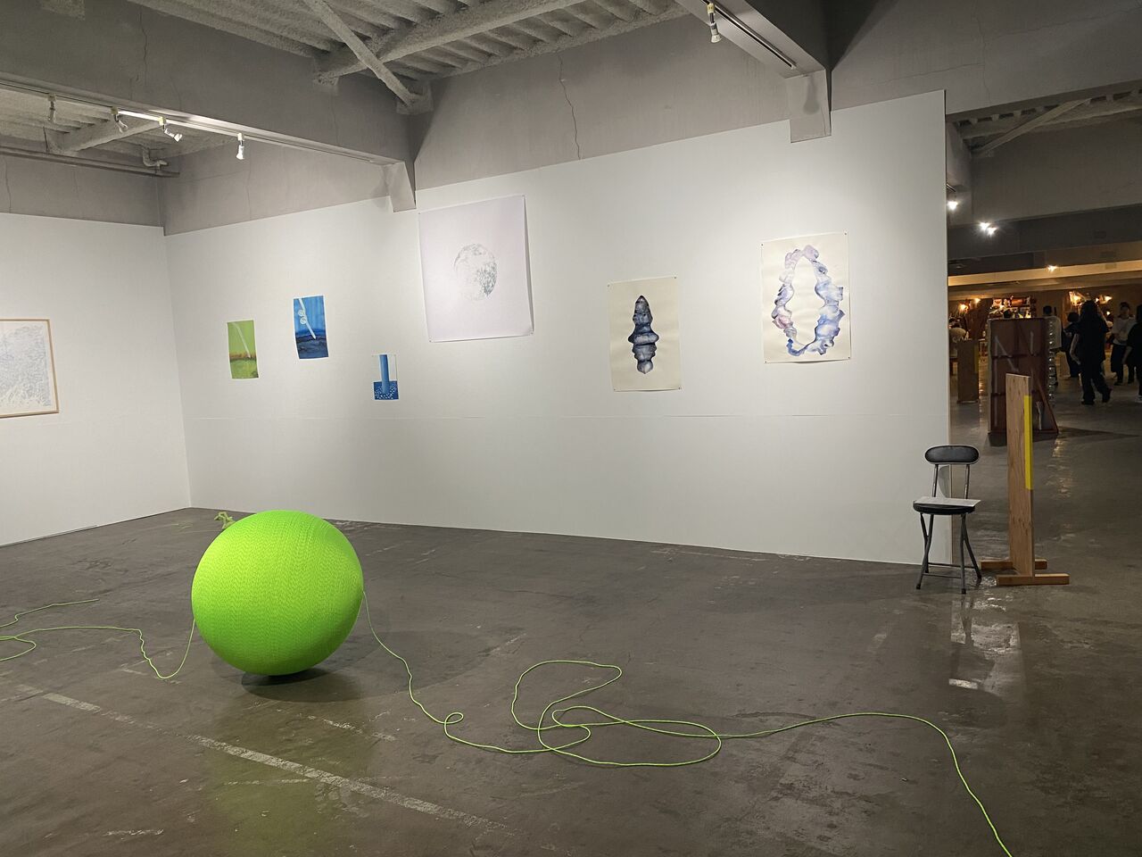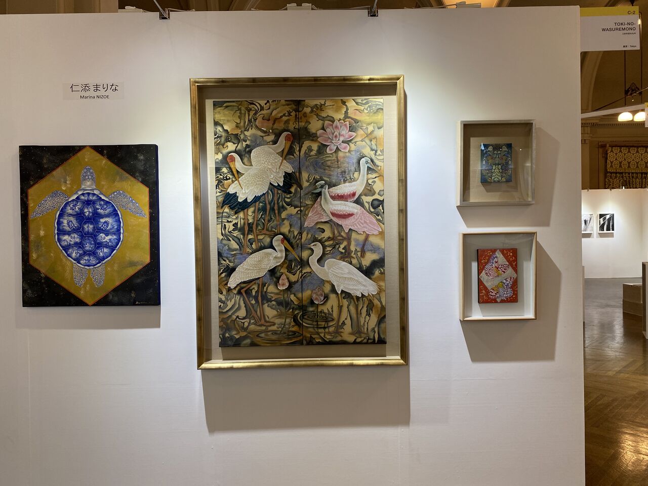 ときの忘れものブース、外側の通路の壁には仁添まりな作品を展示。
