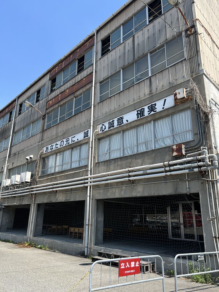 大阪市中央公会堂からバスで30分程度。会場は見た目は廃墟ですが、インスタレーションには最適の大空間です。(ときの忘れもの副社長 尾立)