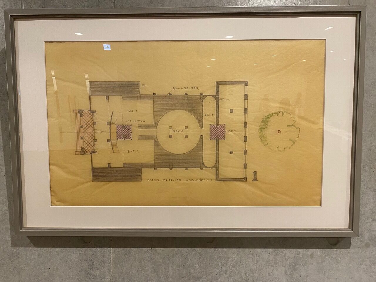 展示は、磯崎新展に際し磯崎が制作した同博物館改造計画案のオリジナル図面2枚(東京大学大学院総合文化研究科・教養学部 駒場博物館所蔵)でした。