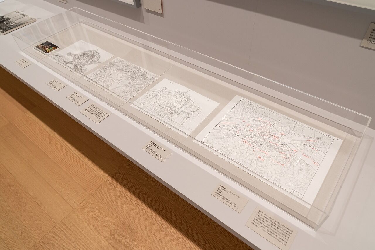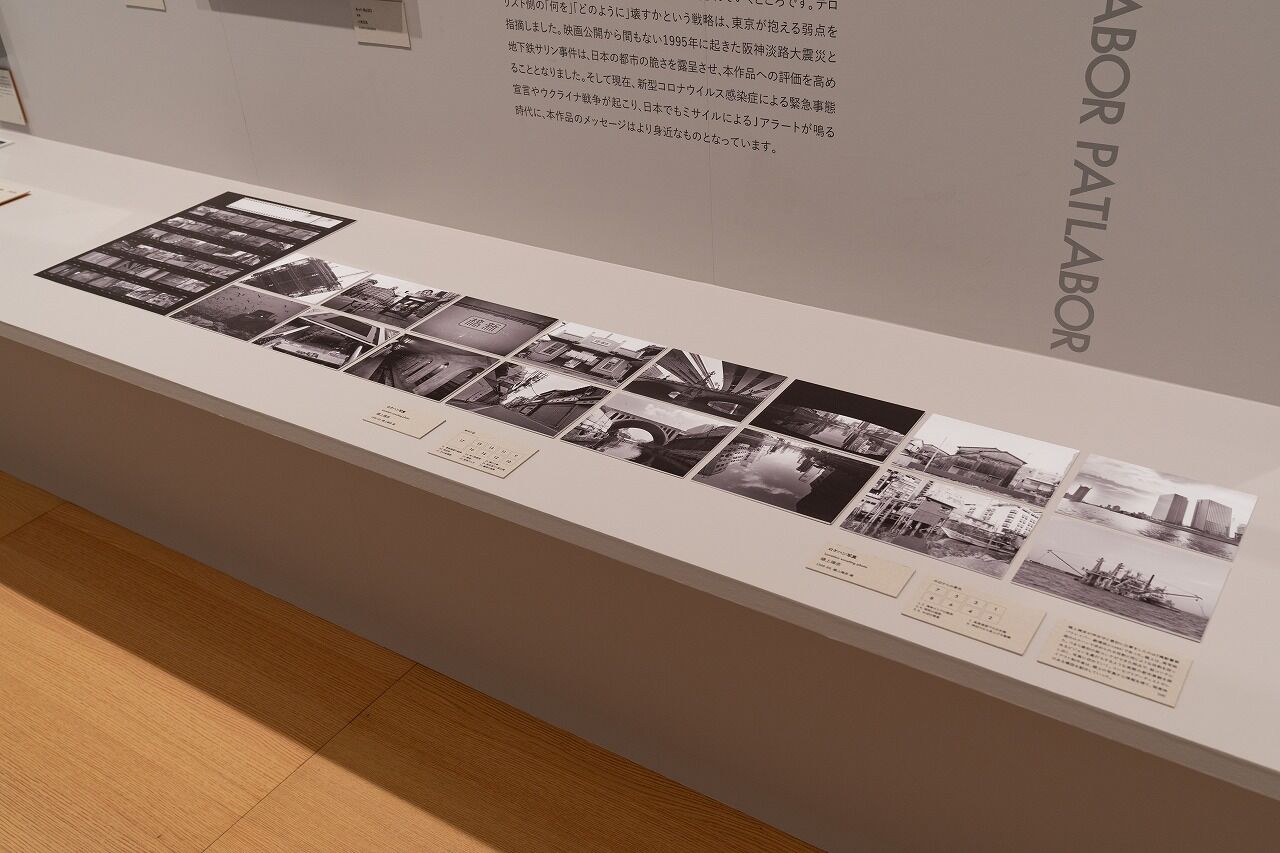 制作のため行われた大規模なロケーションハンティングの写真や、参考にされた昔の風景や街の様子を映した写真集なども併せて展示し、世界観構築の材料となった過去・現在・未来を紹介しています。
