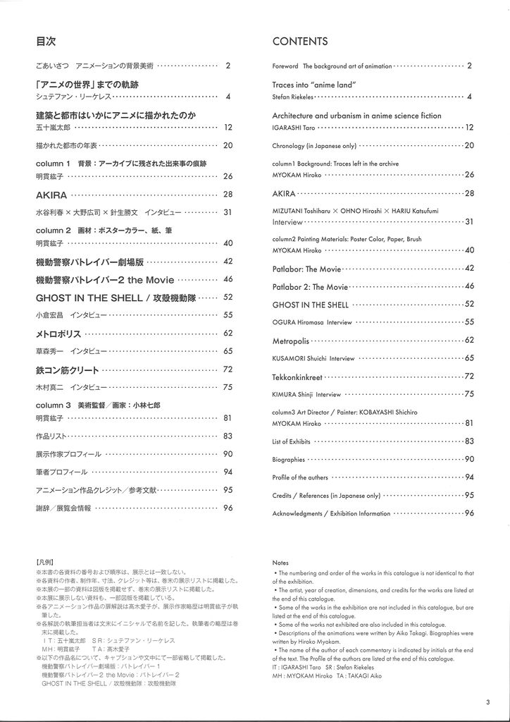 ※「アニメ背景美術に描かれた都市」展カタログ目次(クリックすると拡大されます)