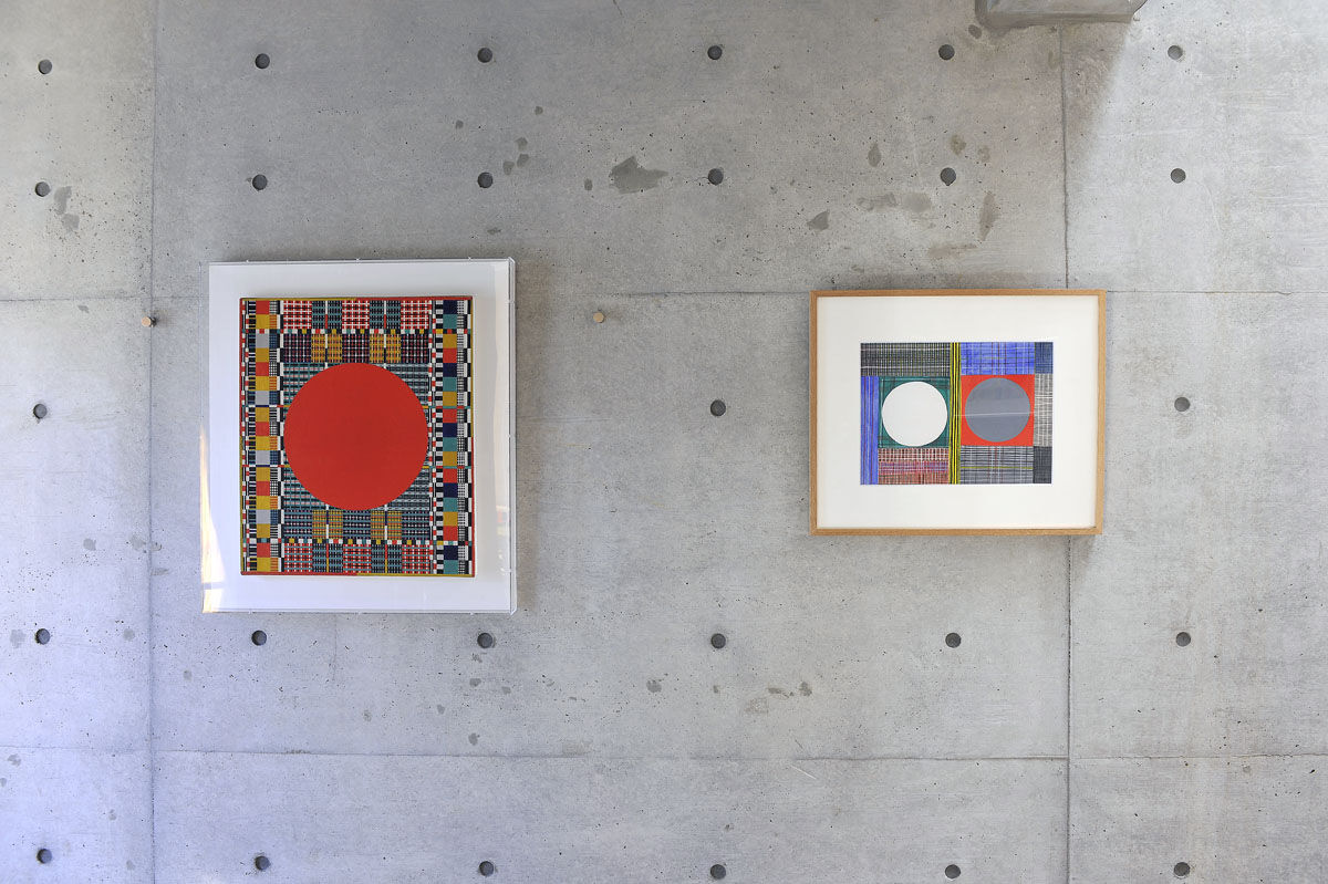 左)オノサト・トシノブ「朱の丸」 1959年 キャンバスに油彩 53.0×45.5cm Signed右)オノサト・トシノブ「二つの丸」1958年 水彩 28.0×36.0cm Signed