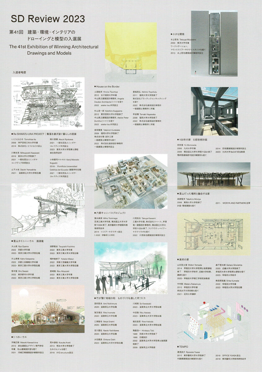 審査員を千葉学、中山英之、山田憲明、金野千恵、アドバイザーを槇文彦、隈研吾が務めた今年のSDレビューでは、杉山幸一郎が設計した福岡の住宅「House on the Border」や、湯浅良介が設計した店舗兼住宅「TEMPO」のほか、全11プロジェクトが入選。