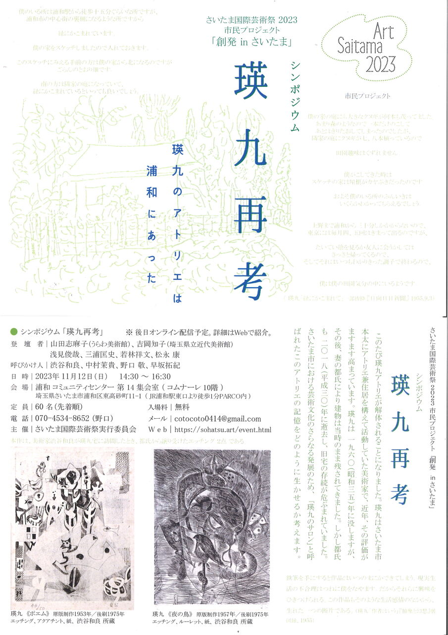 ちょうど瑛九が晩年を過ごした浦和で11月12日に「シンポジウム 瑛九再考」が開催されますので、ご案内します。
