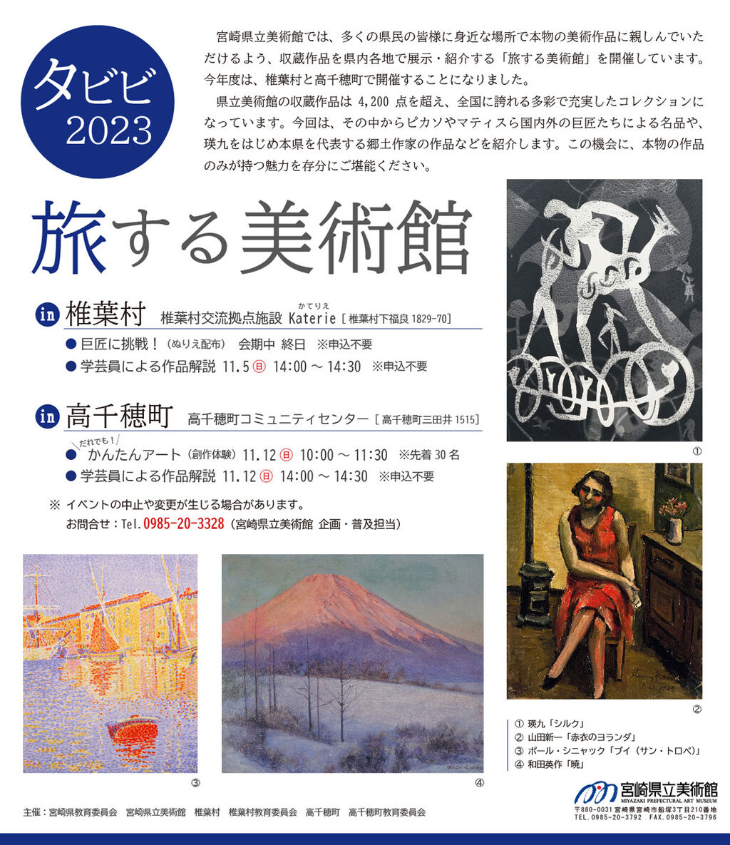 美術館があなたのまちへ旅をする「旅する美術館」(通称タビビ)、今年は椎葉村と高千穂町で開催します。