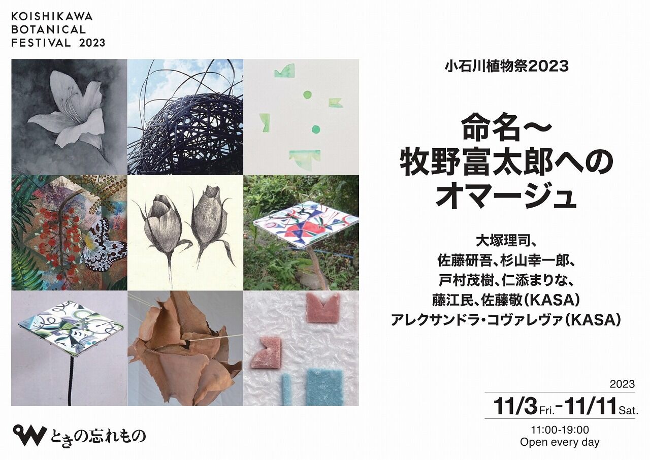 11月3日(金、祝日)~11日(土)まで無休で開催する「小石川植物祭2023/命名~牧野富太郎へのオマージュ」には盛岡、福島、富山、東京、沖縄、スイスの作家たちに牧野富太郎の植物図鑑からインスピレーションを受けた作品を制作していただきました。