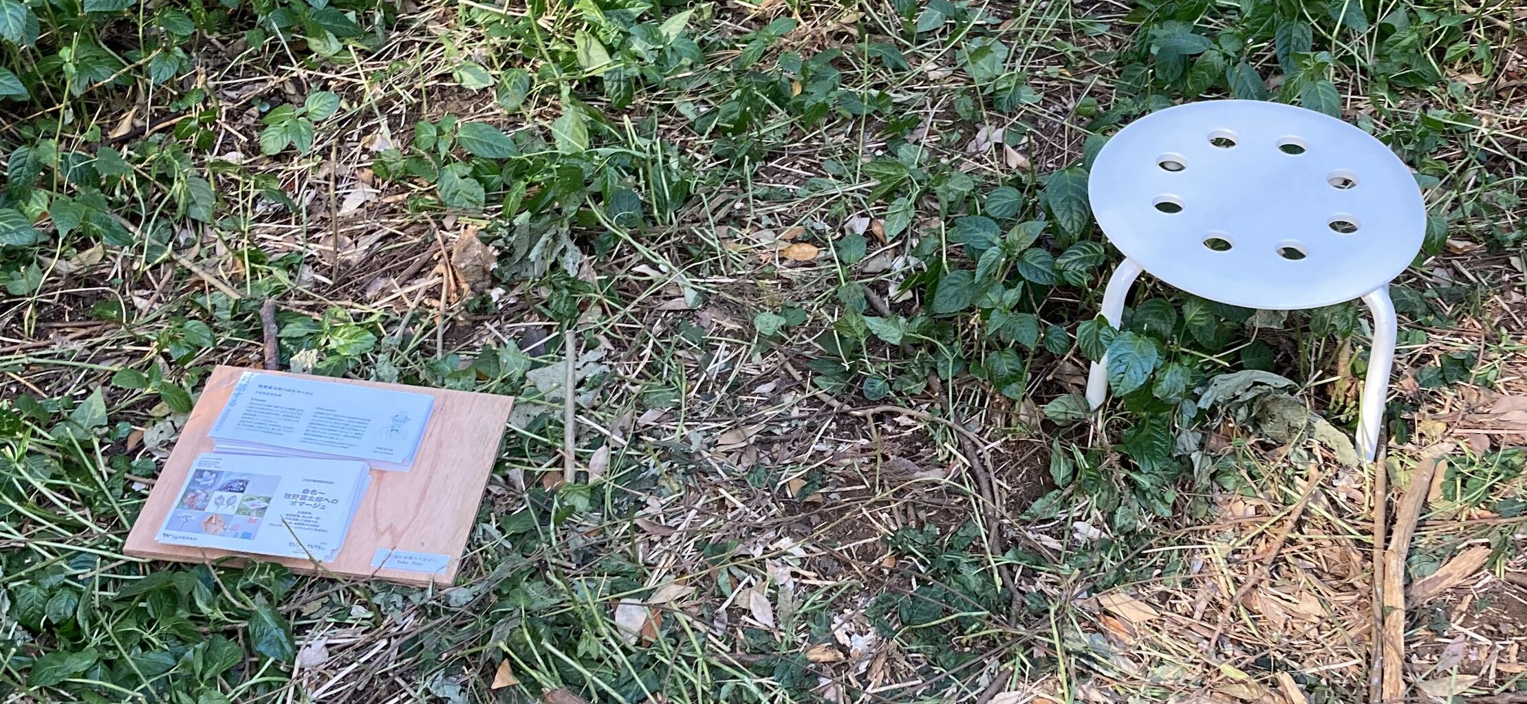 看板の加工中、大塚理司先生のお弟子さん2名(ご年配の女性)からお声がけいただきました。大塚先生の作品を探して、ときの忘れものと間違えて植物園の方に来てしまったとのことです。神奈川からお越しで、今日はもう疲れたのでギャラリーは諦めますとのことでした。