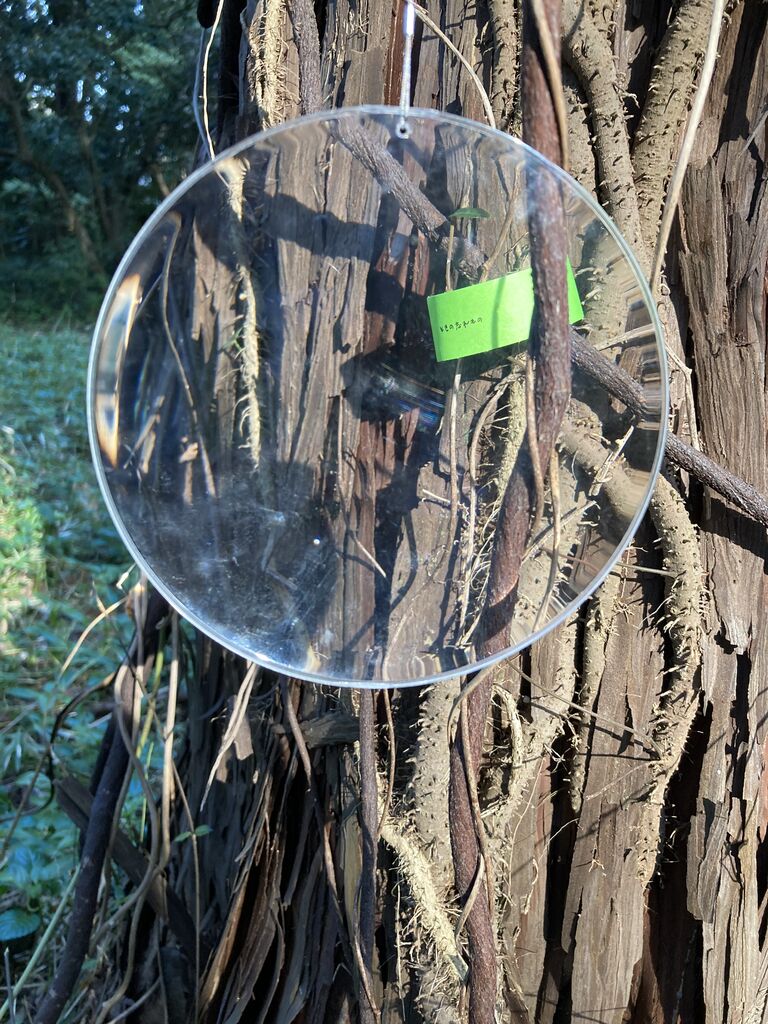 右手の木には虫眼鏡が取り付けられています。それを覗くと、、