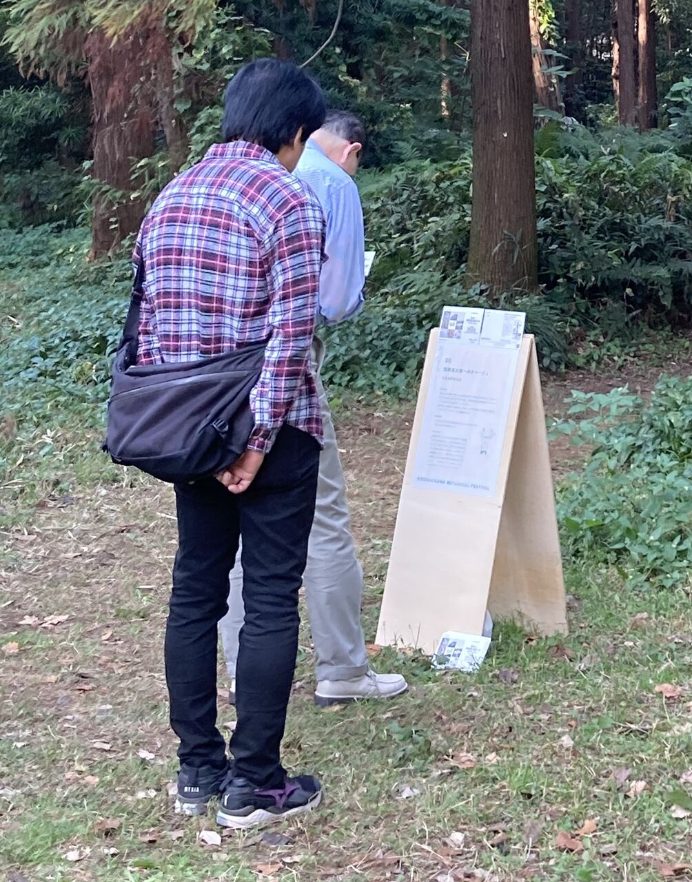 看板には、園外の企画であり、駒込“でも”展示が行われているという旨が一応書いてありますが、“でも”という書き方のせいで、園内にも作品があるのかと思う方が続出。