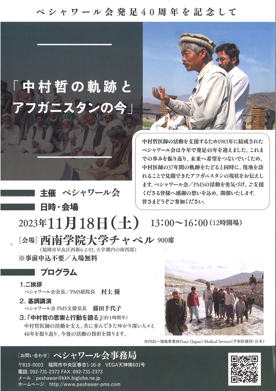 ●ペシャワール会 40周年記念行事が福岡で開催されます。