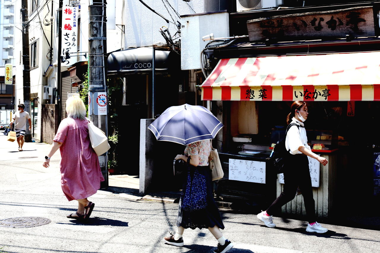 ph19 本町通り。幼稚園帰りの親子。本町3-1。2023.7.19