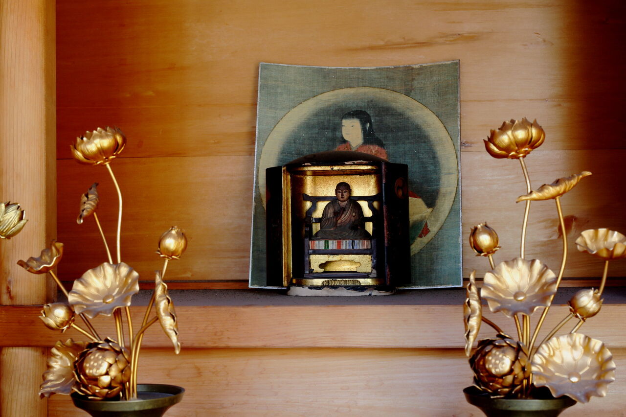 ph11 不動院。小さな弘法大師像を納めた厨子と稚児大師の図像。本町3-4-6。2023.7.19