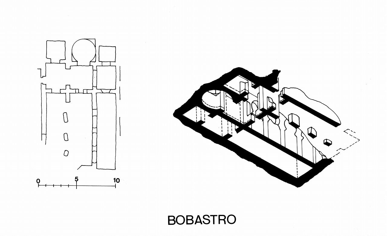 ボバストロの教会は建設が917年以前と推定されている、三身廊を持つ16.5X10.3メートルのバシリカ形式で、同代建立のサン・ファン・デ・ラ・ペーニャの教会堂(San Juan de la Peña, Santa Cruz de la Serós, Huesca県)やサン・ミジャン・デ・ラ・コゴージャの教会堂(San Millan de la Cogolla, La Rioja)と同じく、丘陵に刻まれたアンダーグランド教会である。というのもこの地方一帯は928年のアブド・アッラフマーン3世の征服まで点的に持ちこたえたキリスト教徒らのレジスタンス地区であったからだ。