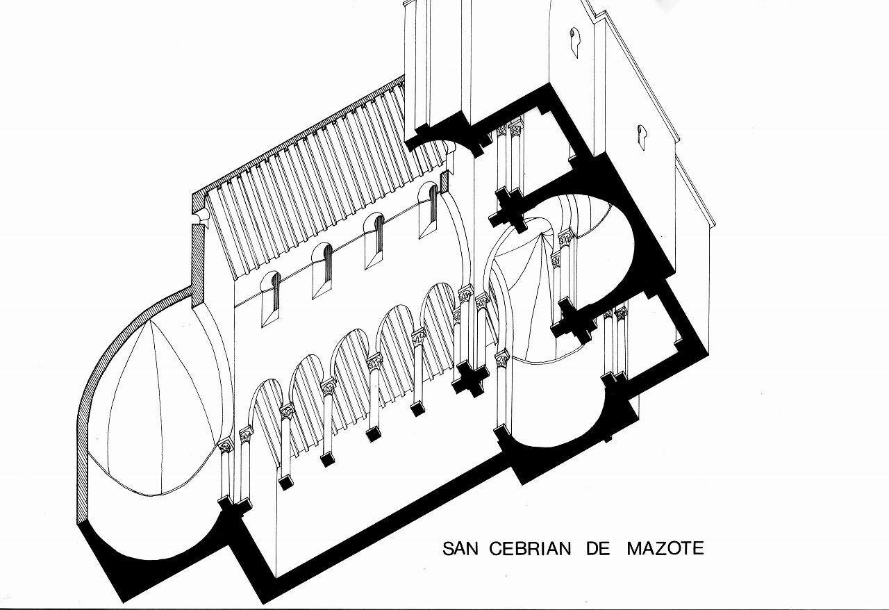 その端的な例としてはサン・セブリアン・デ・マソテのサン・チプリアーノ教会(San Cipriano, San Cebrián de Mazote, Valladolid 県, 920年奉納)があるが、これなど空間構成はあのコルドバの大モスクのスケール版とでも言える。