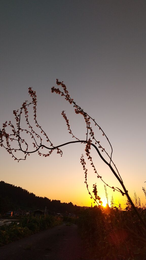 夕暮れの刈谷田川土手