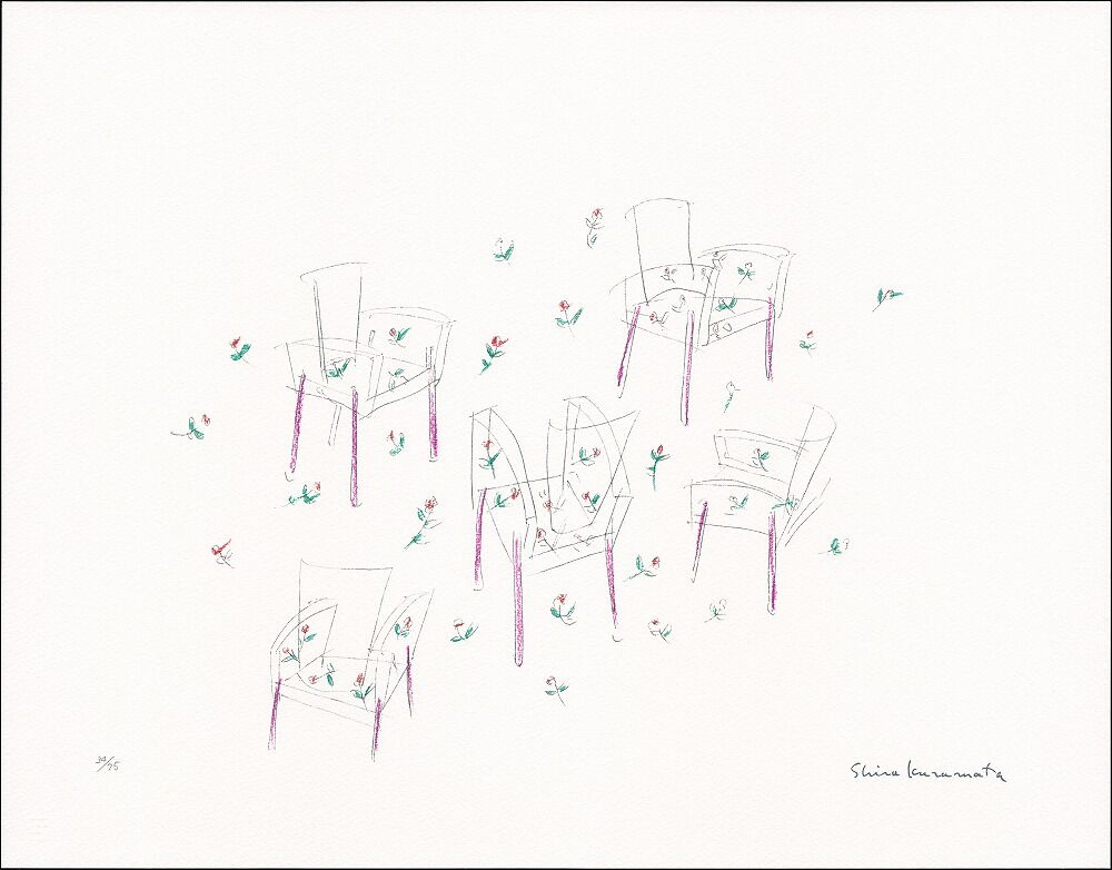安定した椅子が、いつのまにか時代に取り残されて不安定になり、椅子の機能を失う。そのときはじめて、椅子のなかの椅子でない要素がせり出してくる。〈ミス・ブランチ〉を含むシルクスクリーンには、そこに描かれていないもの、描かれてはいけないもの、壁の人型に収まってもなお可視化されないなにかが描かれている。「かぎりなく喪失を所有する薔薇」が錫の箔でできていることを、喪失を所有できる者だけが透明さの裏側に触れることを、ブランチは知っていた。1970年代なかば、「どちらかというと意識的にスケッチを避けている」と語っていた倉俣史朗は、「スケッチを描いていく途中で、むしろほんとうにやろうとしたことからフォルムの面白さみたいなものにどんどん移行しちゃう恐れがある」のだとつづけている(「事物の逆接」)。しかしこれが真実だとは思えない。恐れを抱いていた当の本人は、「ほんとうにやろうとしていること」と「ほんとうにやろうとしたこと」のあいだの防空壕のような空白にとどまり、バケトロンをかぶっていまも姿を消したままなのだ。