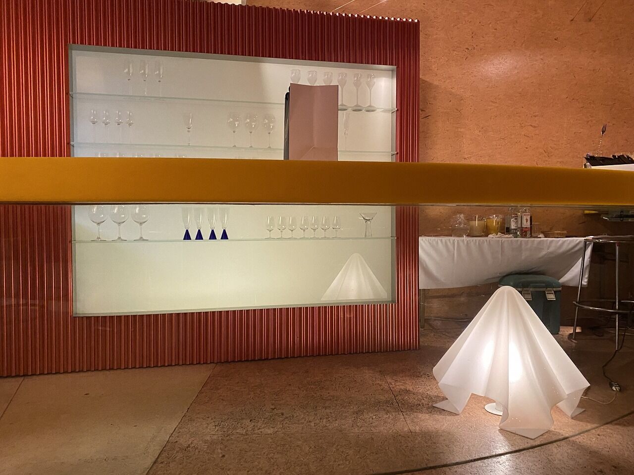 「COMBLE」は、実は1998年に一度閉店しています。小林さんの会社が倒産したことにより、コンブレが借金の形に取られ、一度店を閉めることになったのです。オーナーが変わりイタリアンレストランになり、アルミスパンドレルが半分取っ払われるなど内装が変更されてしまいました。その間、中山さんは「コンブレ」という名前だけもらって別のバーを開きます。イタリアレストランは一年ちょっとしか持たなかったと知った中山さんがお店の様子を見に行くと、ひどい汚れようだったと言います。中山さんが買い戻し、仕事帰りの夜中に掃除に通い、3ヶ月かかって綺麗にしたそうです。そして、できるだけ元通りに戻そうと、当時「COMBLE」に携わった五十嵐さんや勝俣さんはじめチームクラマタに声をかけて、すでに半分無くなっていた赤のアルミスパンドレルは、足りない部分を三保谷ガラスに依頼してグラス棚を作ってもらい、2000年7月に営業を再開されたという経緯があります。別の仕事で大忙しだった中山さんは時々お店を開けていたそうですが、本格的に今年4月からお店を再開しました。