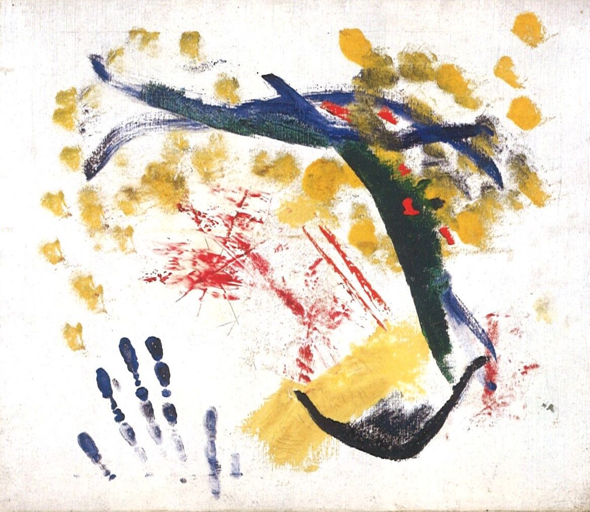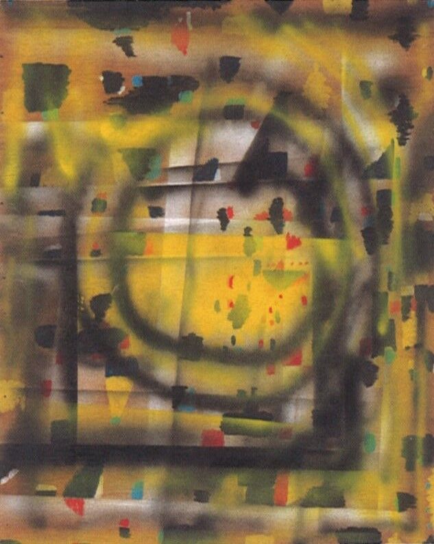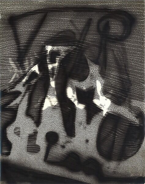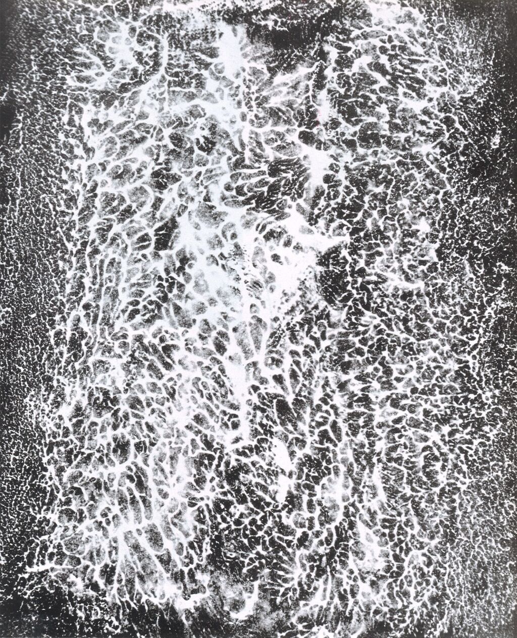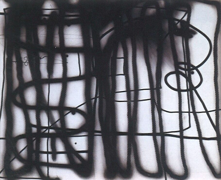 具体的に言うと、写真的なプロセスには、通常は、身体性はあまり介在しないのですが、瑛九の場合は、懐中電灯の光を細くして印画紙を感光させて、文字通り「光で描く」ことで、かなり絵画的な表現ができるわけです。こちらの絵画はスプレーを使っていますが、光で描いたフォト・デッサンと非常に近いです。