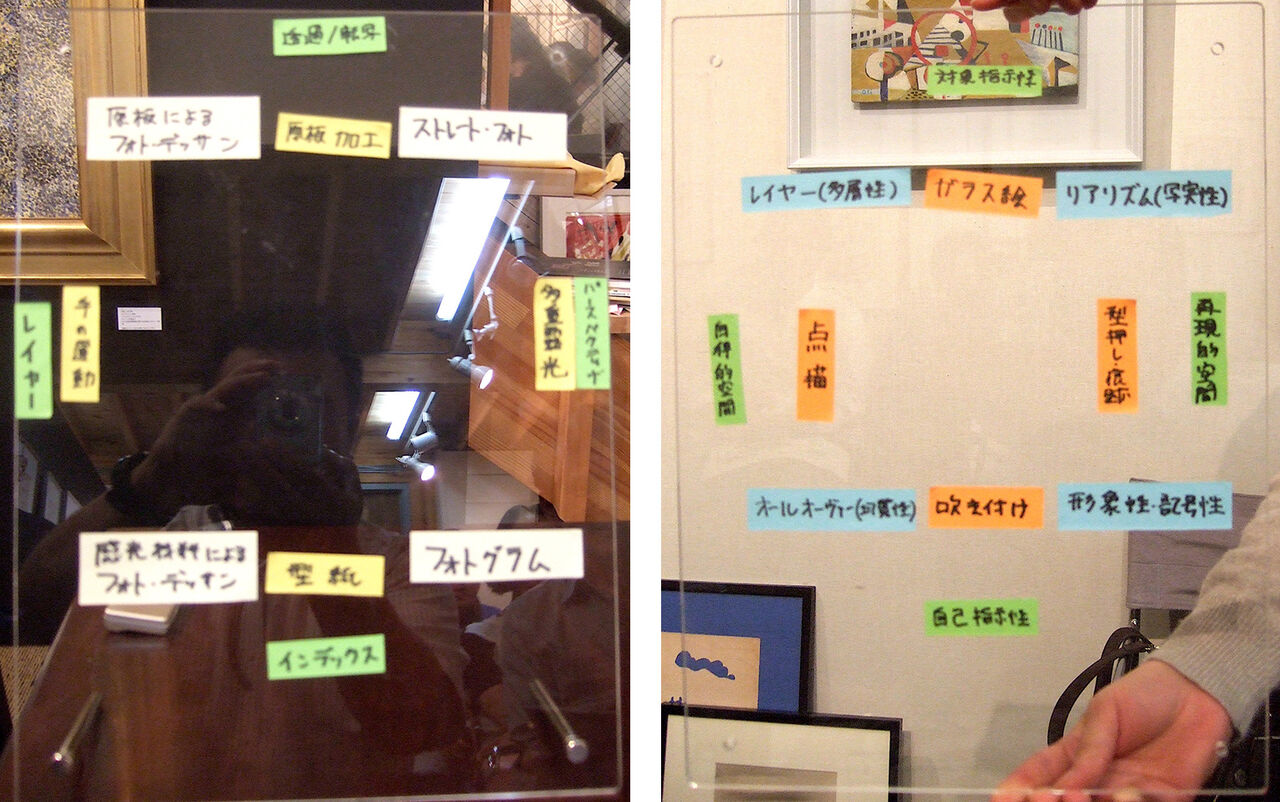 その《街》という作品は、最初にアラビアゴムで描く、白抜きという状態でイメージを作って、そこから色の版を展開させていったのではないかという結論に達しまして、それはかなりフォト・デッサンの制作プロセスと似通った部分があるのではないか、という発表をいたしました。