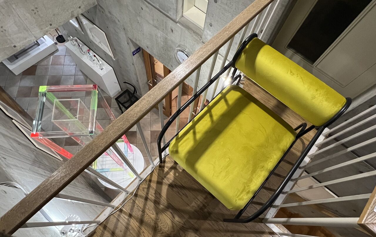 住宅の中で倉俣作品を味わうことができるのがいい、というか、《Cabinet de Curiosite》を上から眺める機会がまずない。許可いただき座ったソファの心地よさにダメになりそうだった…。