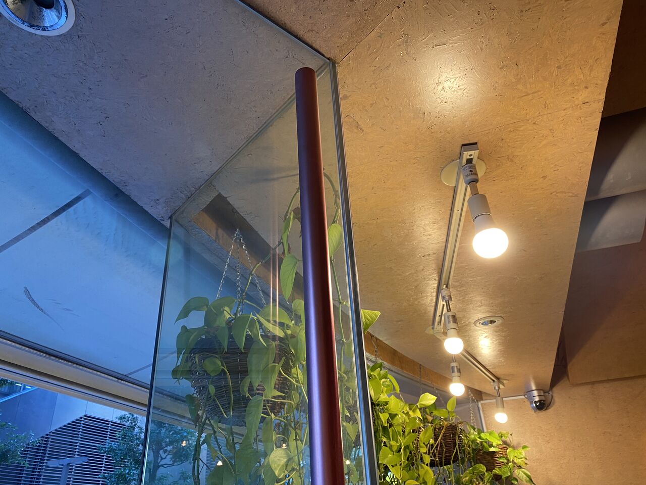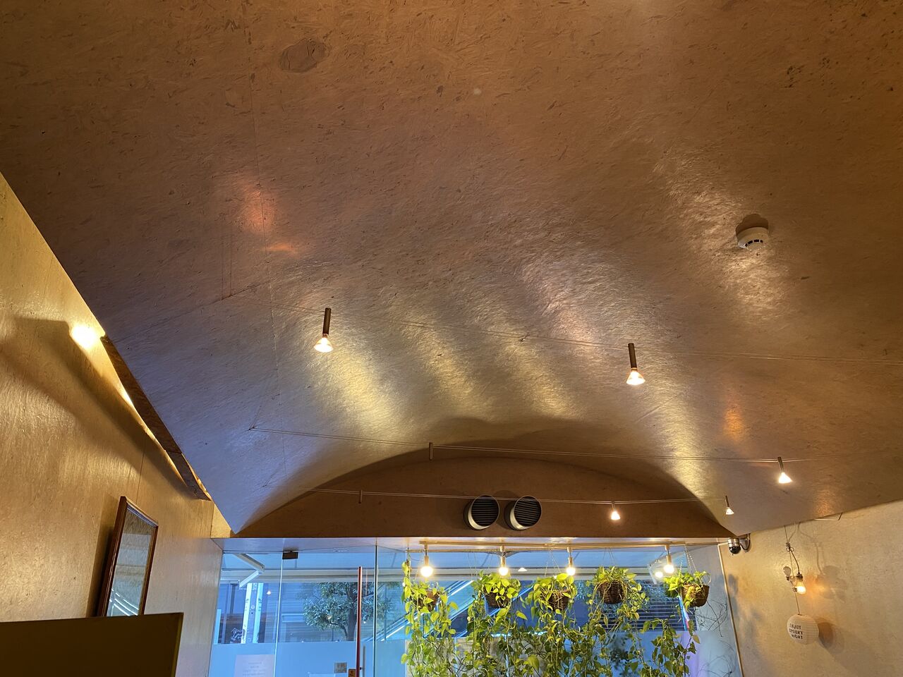 壁もOSB。火災時にどこまで損傷を負ったのか、当時のままの部分はどこなのか詳しくは分かりませんが、ランチは美味しくて倉俣さんのデザインを随所に感じられるお店でした。