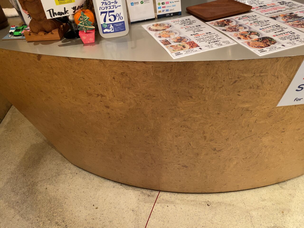 キッチンと客席を仕切る目隠しは波になっている。ぜひ、秋葉原にお立ち寄りのときは「EMONS CAFE」さんに寄ってみてください。