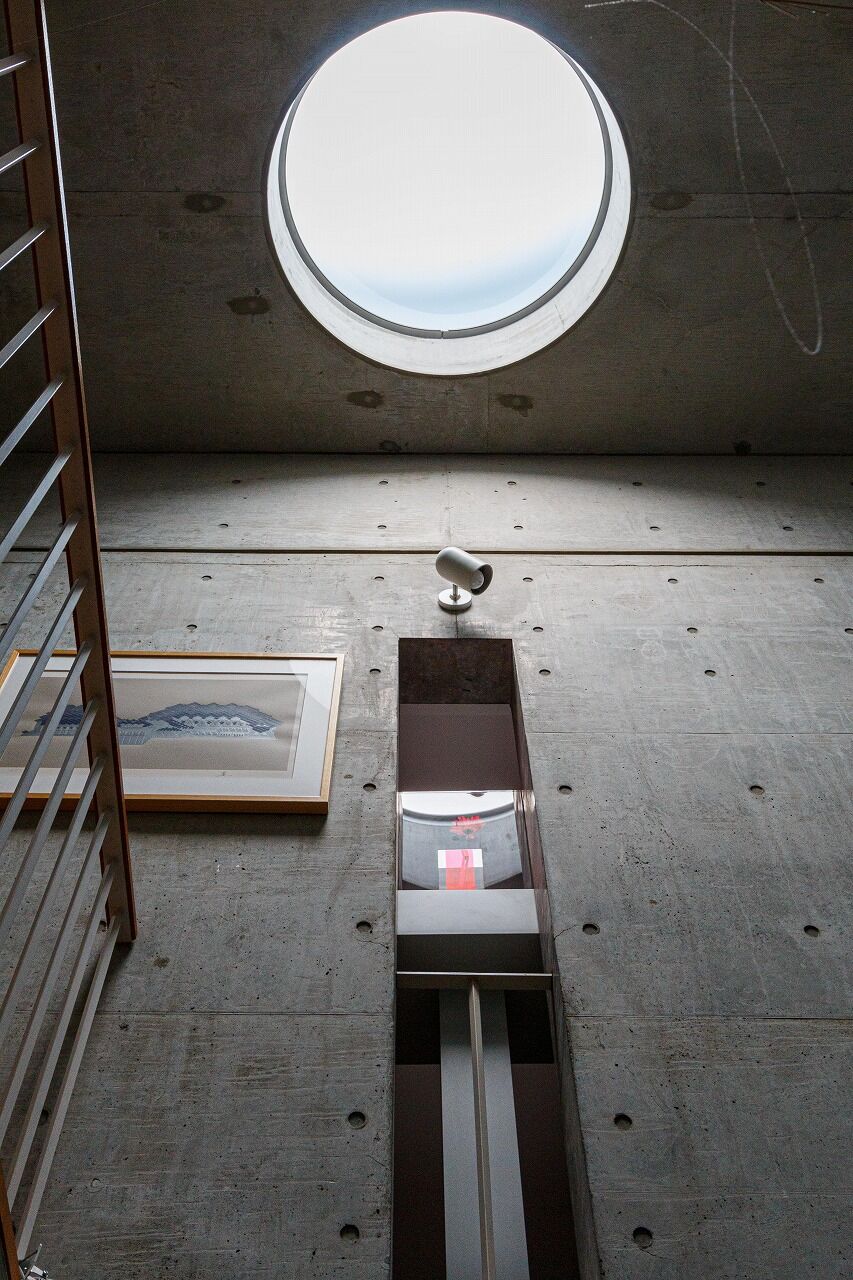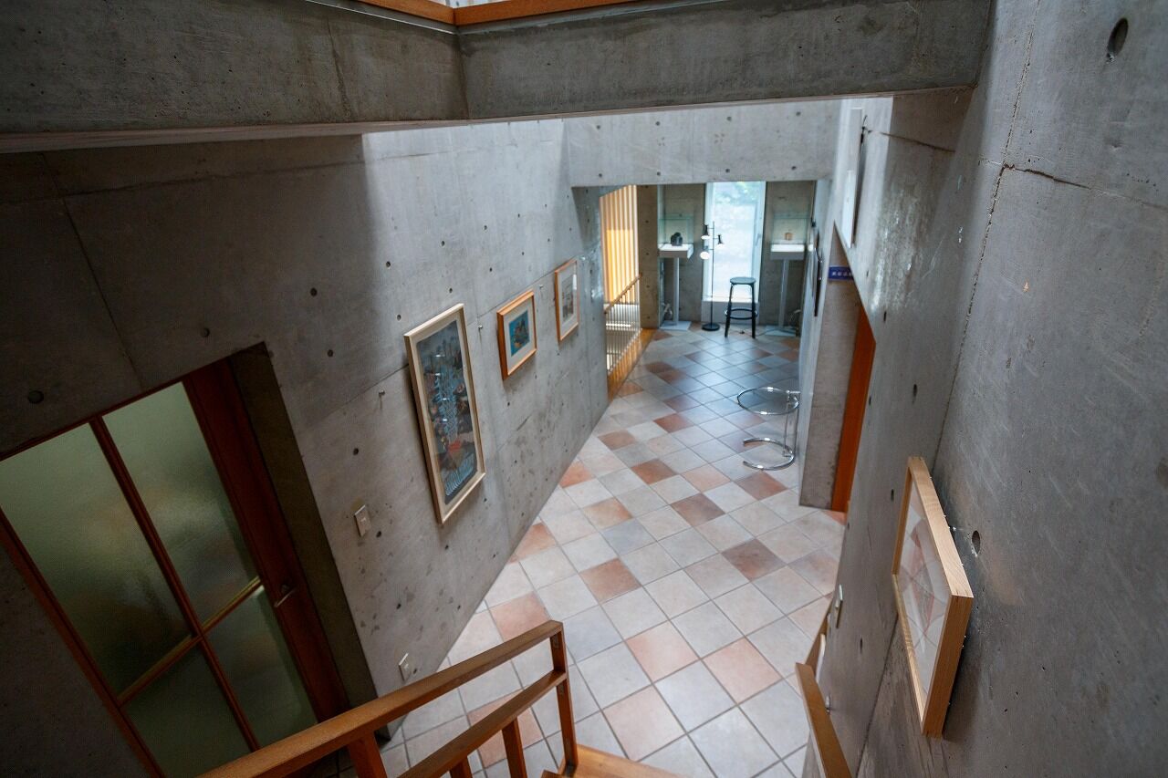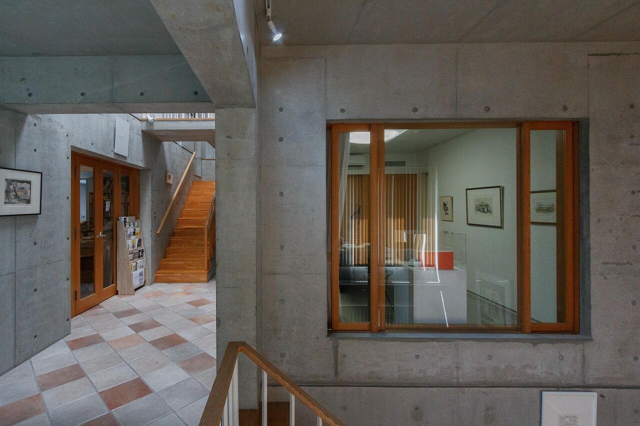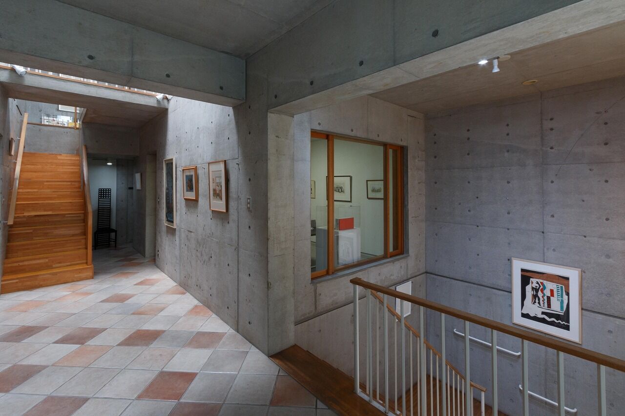 作品を展示するためにコンクリートフックと手すり取り付けたくらいで、ほぼ竣工当時のままです。