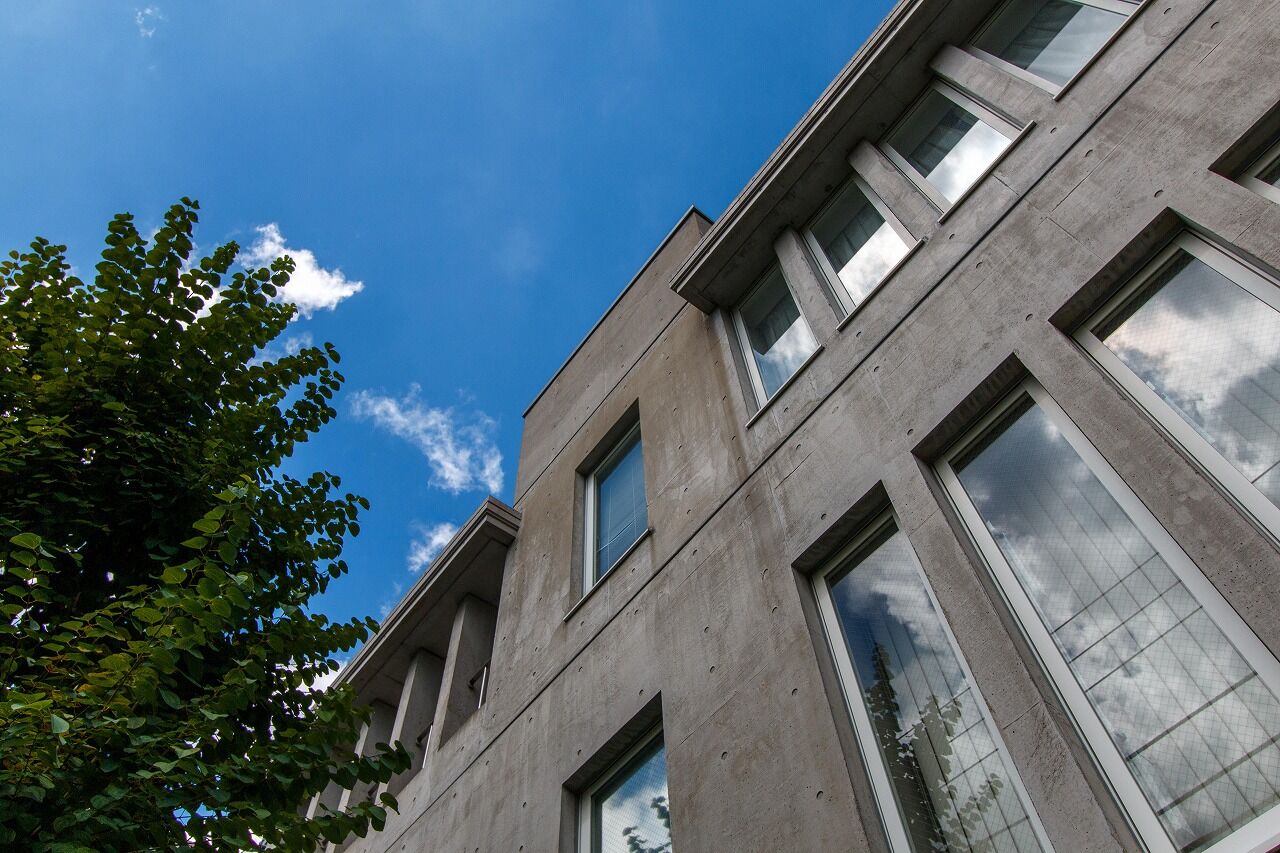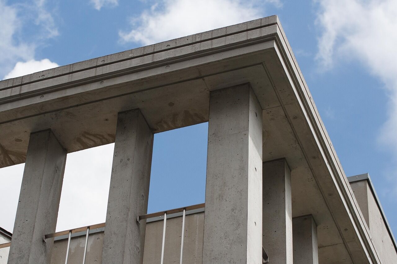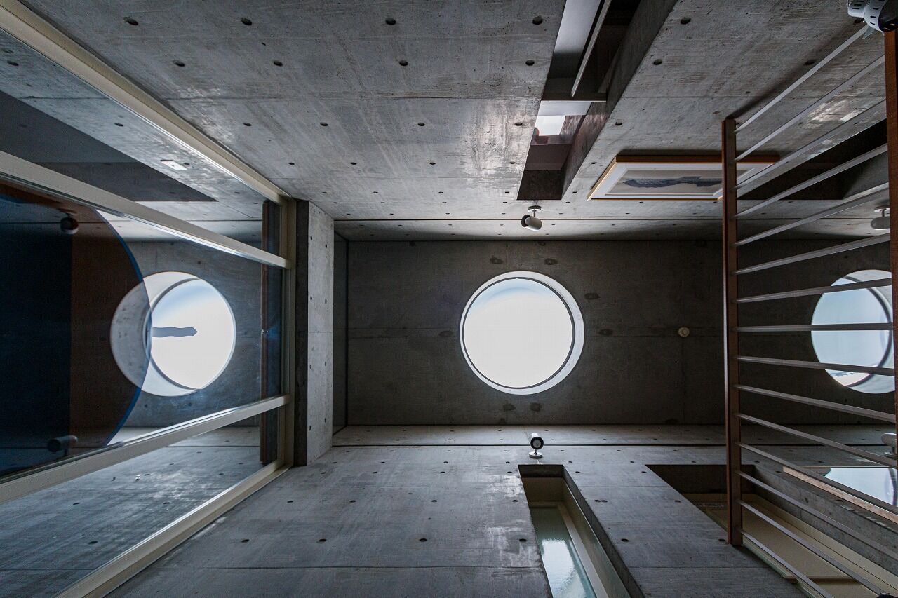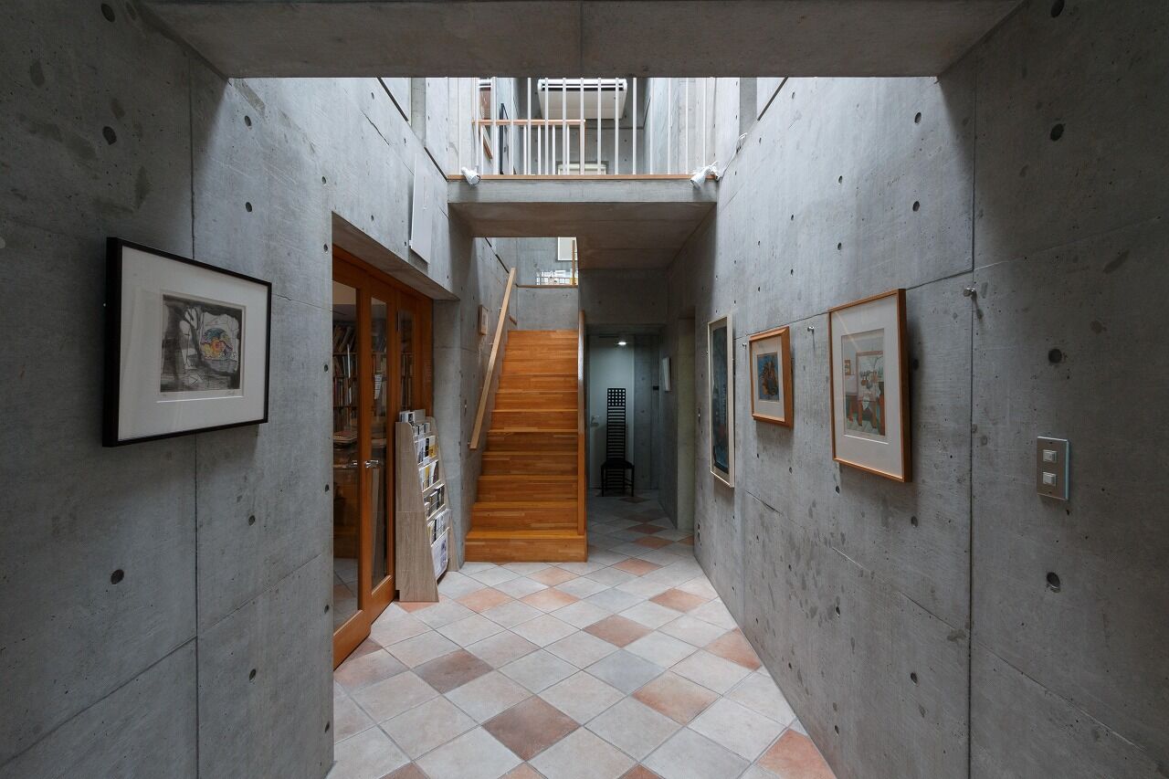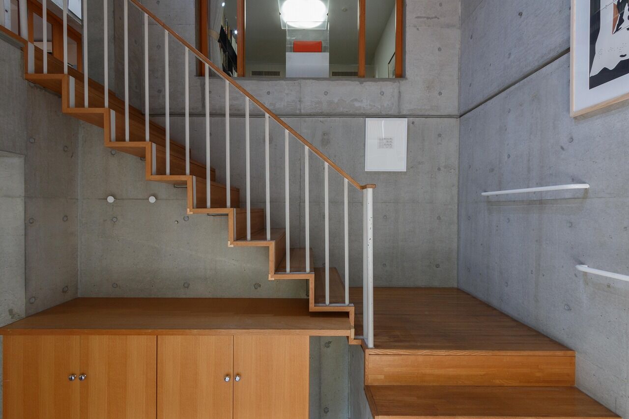 作品を展示するためにコンクリートフックと手すり取り付けたくらいで、ほぼ竣工当時のままです。