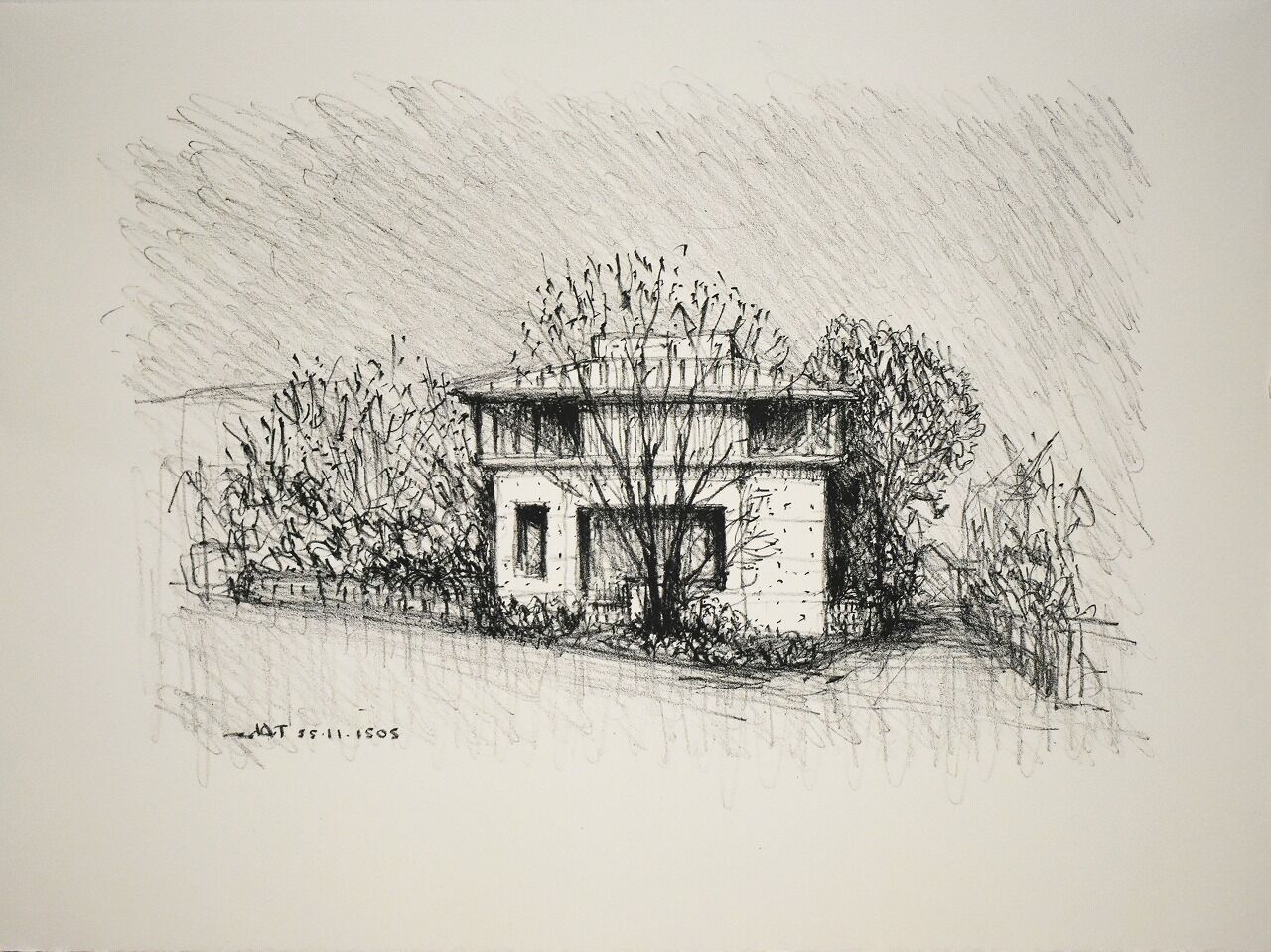 阿部勤先生が生前唯一制作された[中心のある家]の版画。私たちも全く知らず、その存在を知ったときはたいへん驚きました。阿部勤先生に感謝を込めて展覧会を開催しました。