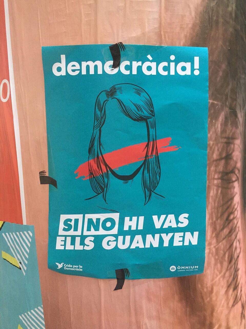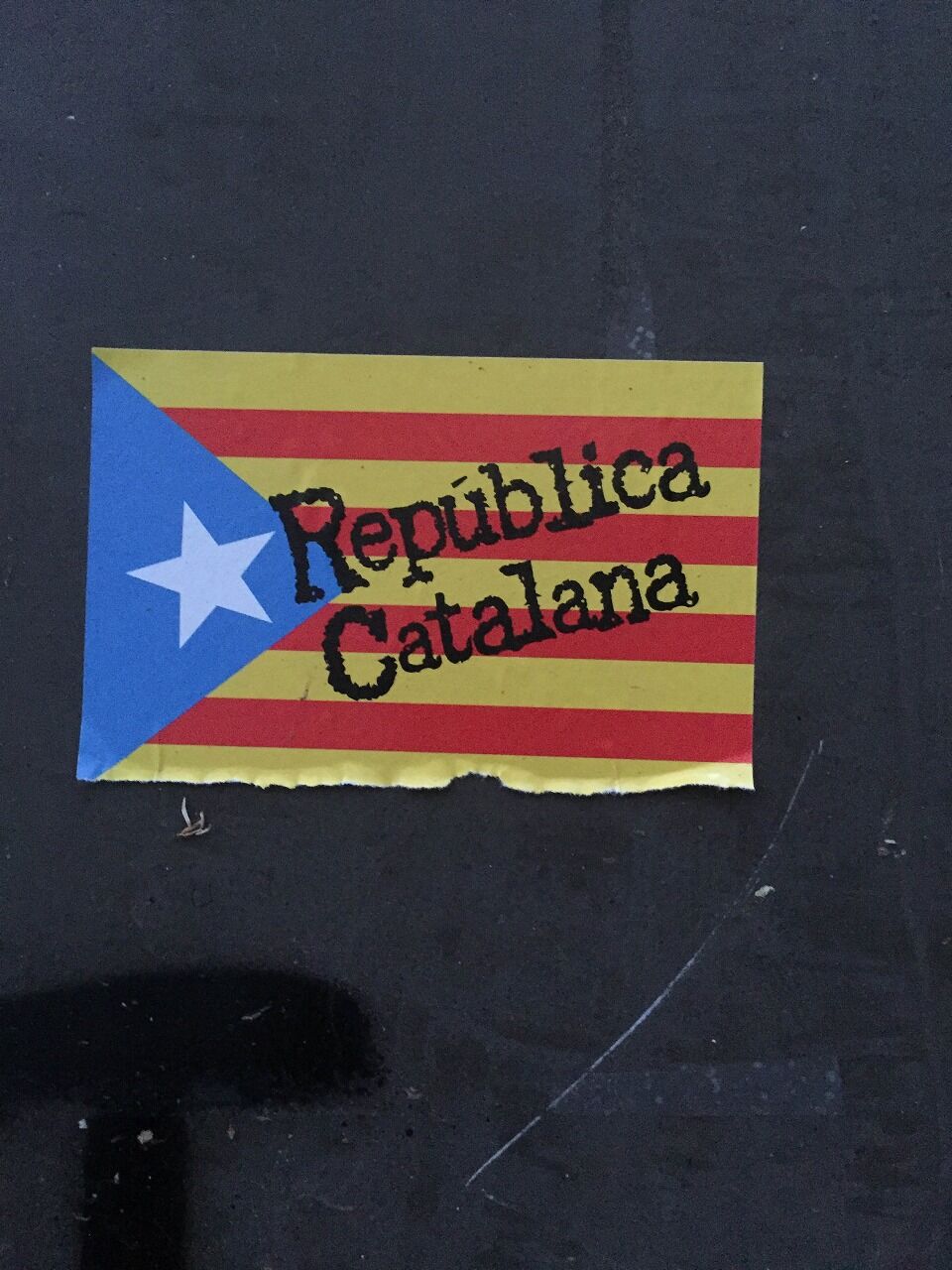 スペインの王政から離れて共和制政府をカタルーニャに立ち上げようという独立運動の街頭に張られた膨大な数のステッカー