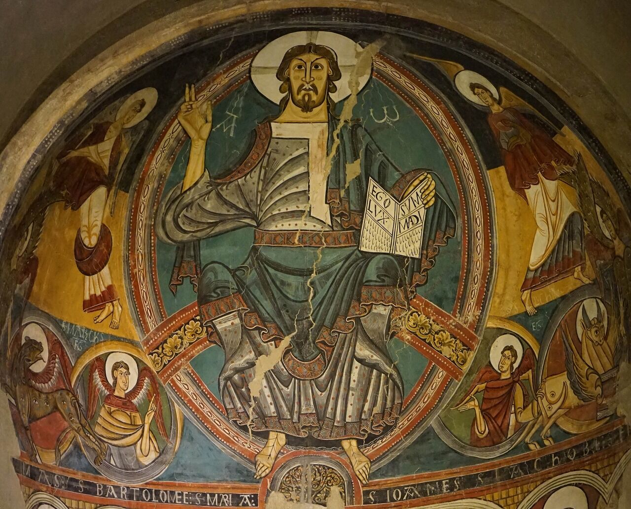 サン・クレメント・デ・タウイ教会のアプスから移転された壁画の全能者ハリストス (現在国立カタルーニャ美術館の至宝となっている)