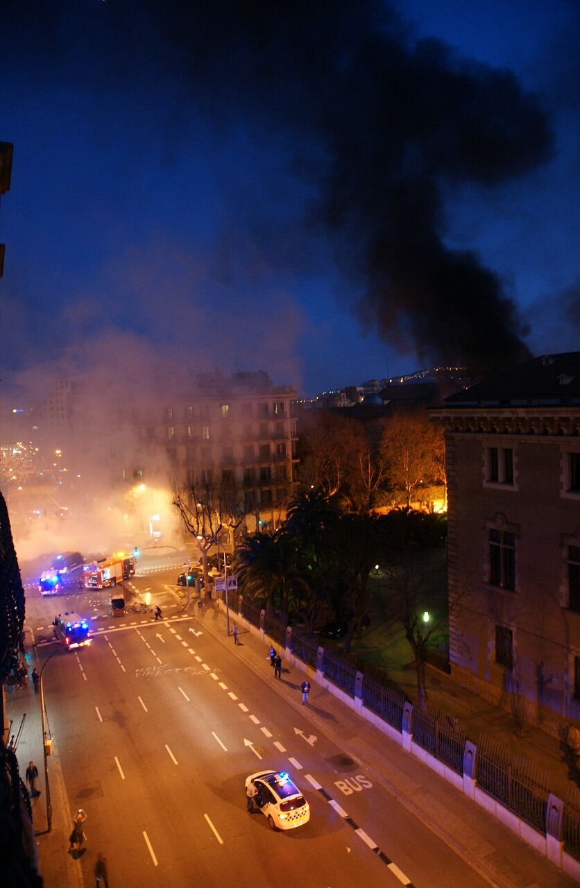 交差点ではゴミのコンテナーが焼かれ、道路がブロックされる