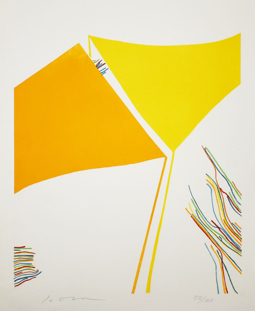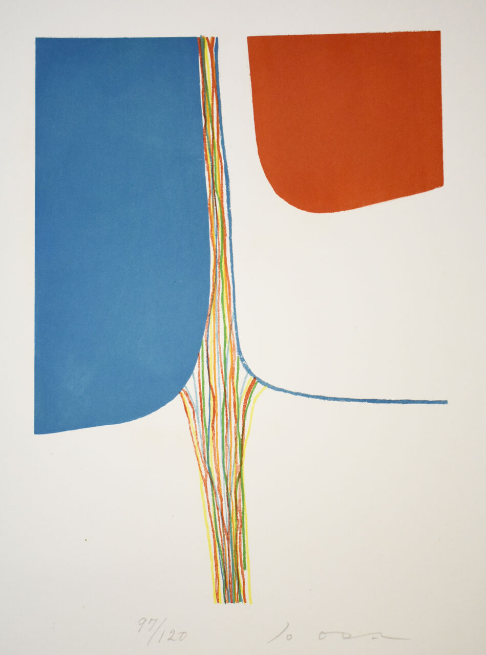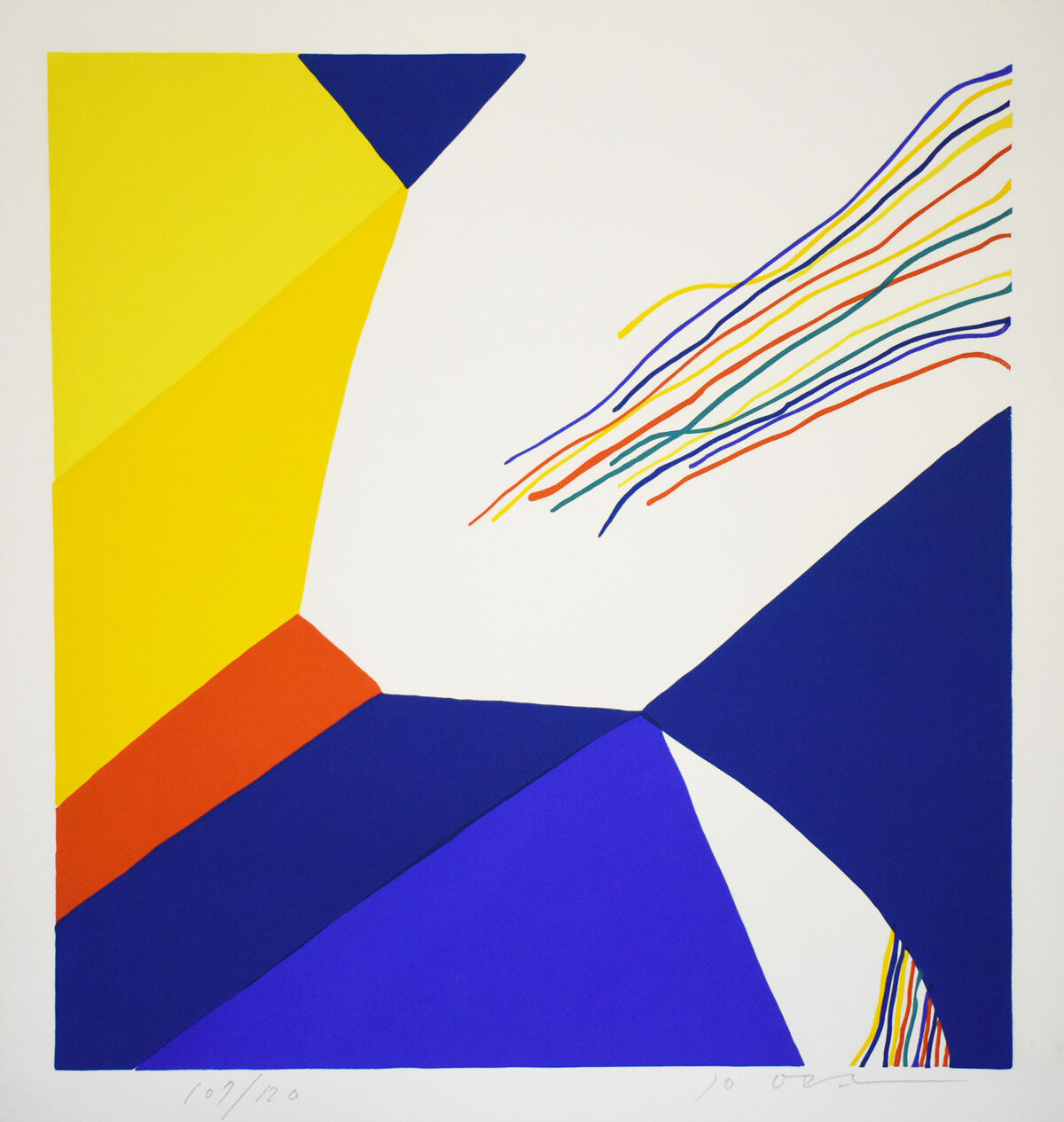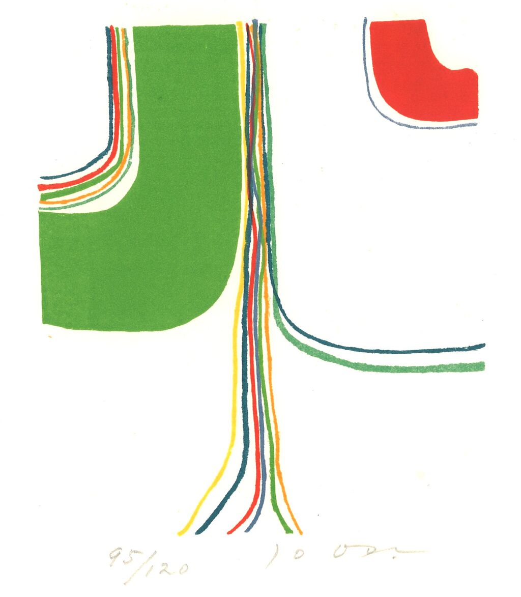 1960年代から立体造形と並行して木版、銅版、リトグラフ等の版画の制作を始めます。初期の版画はドローイングを主とし、次第に幾何学的形象を持つ明快な色面を構成する作品(独自のメタルリーフプリント)へと移行、展開しました。