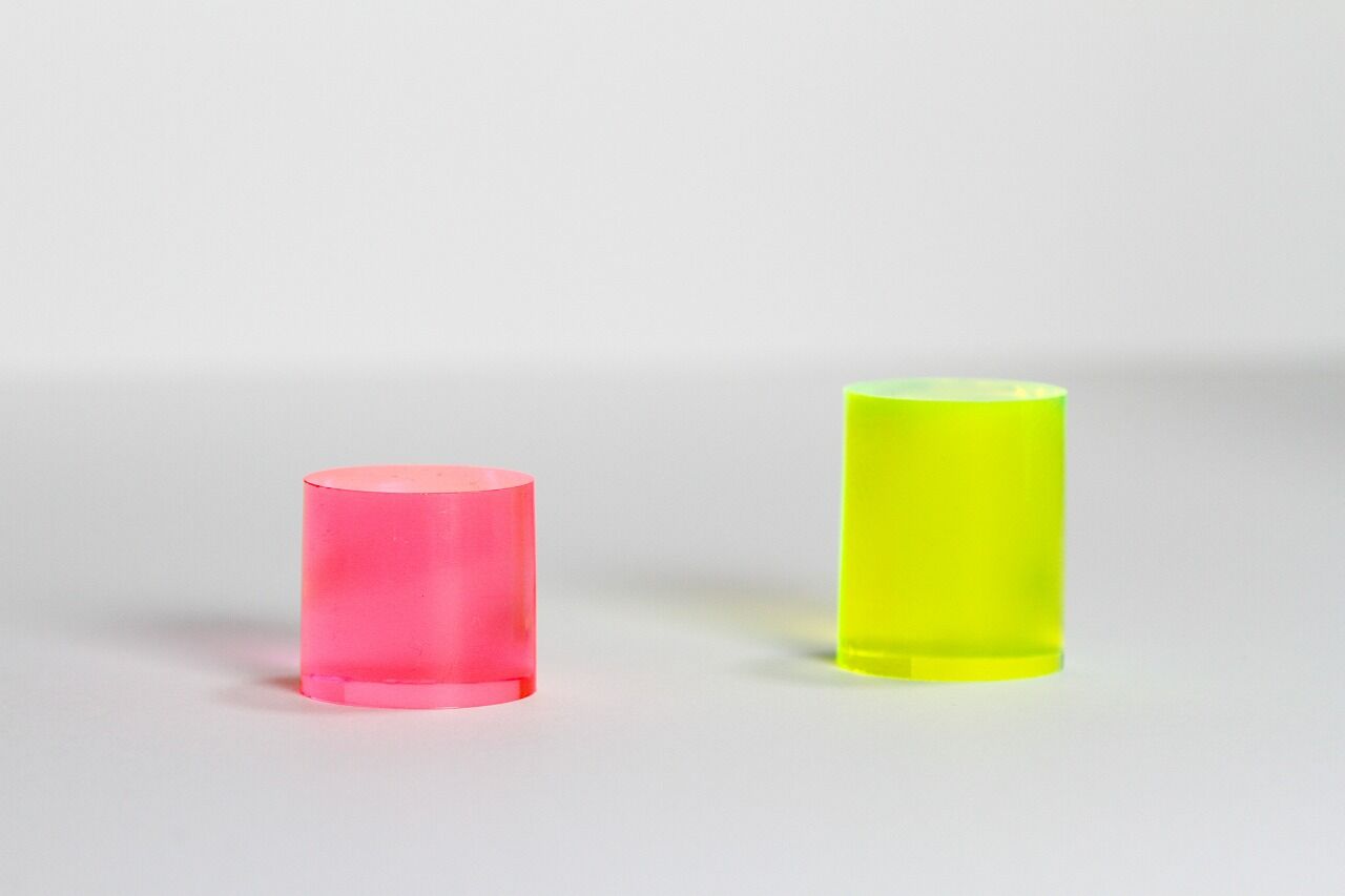 カラフルなパーツ3点も、検討用に制作されたアクリルの試作です。
