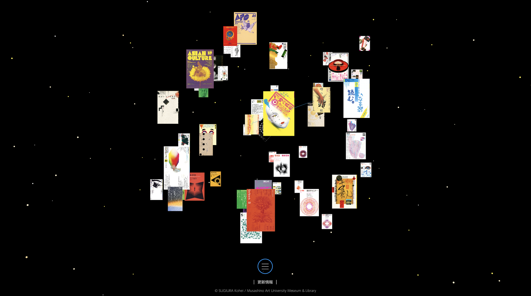 宇宙のような画面に浮かぶ杉浦氏のデザインを次々にクリックしていたら、いつの間にか仕事を忘れて没頭してしまいました。デザインを勉強中の方はもちろん、杉浦氏をまだ知らない方にもお勧めしたいサービスです。