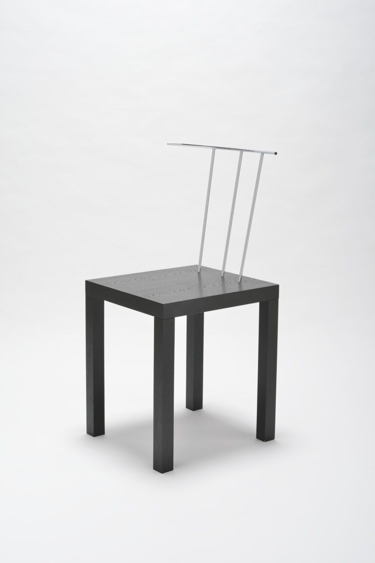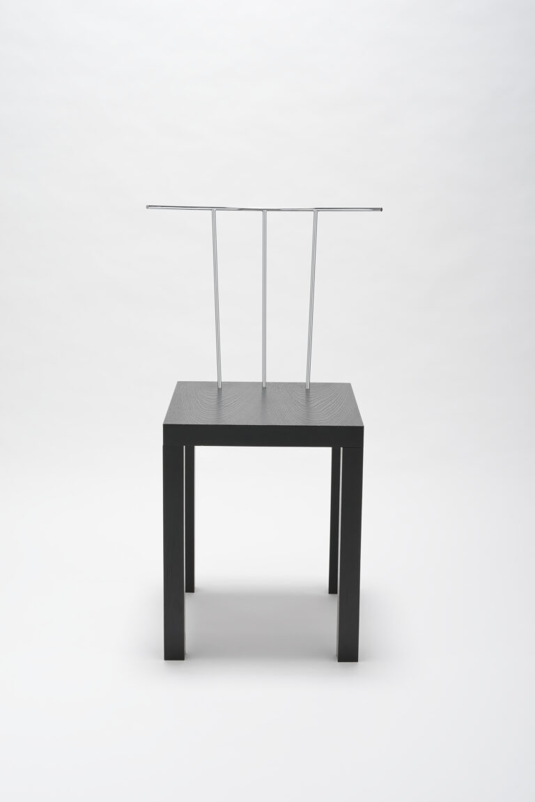 例えば、町田さんが手掛けた倉俣デザイン家具の代表作《静岡ファニコンの椅子》。木製の4本脚にスチールパイプの背もたれのみ、「椅子」という概念を体現するようなシンプルな形です。普通なら力の分散のために直立の脚と脚の間に横木を渡して強度を出すものですが、倉俣デザインではNG。町田さんが試作品を倉俣事務所に持ち寄る度、椅子に直接「ここを1mm削って」といった赤ペンを入れて戻される日々が続きました。製作は88年の10~11月という急ピッチで進められています。