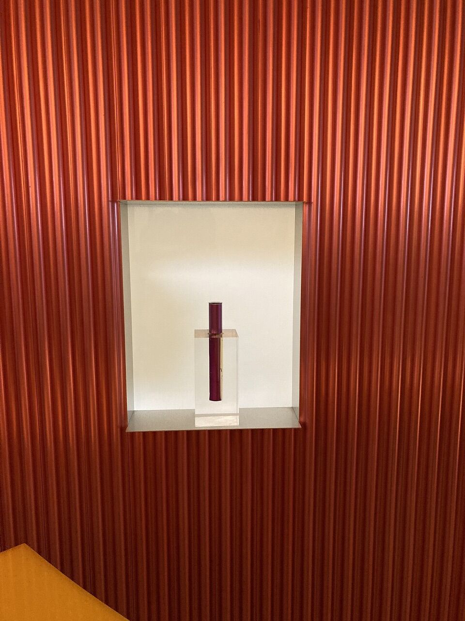 同系色のアルミスパンドレルに縁どられ、画廊での展示とはまた違うスタイリッシュさを醸しています。