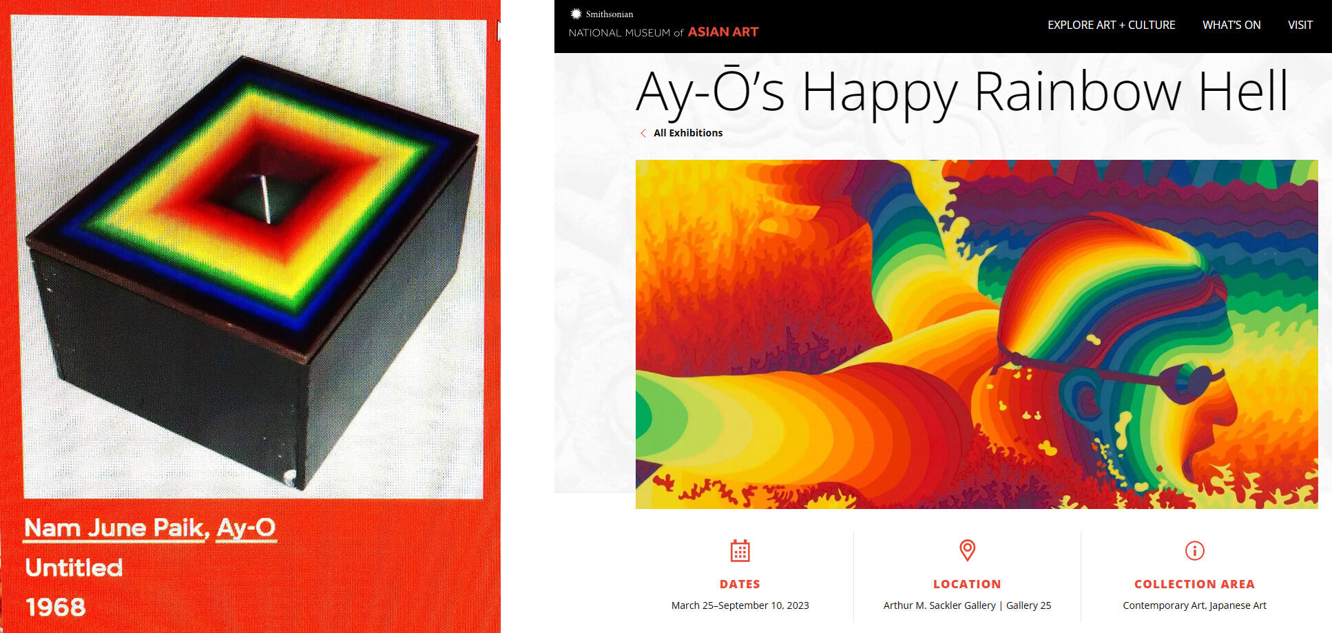 左から:図3 ナムジュン・パイク&靉嘔の共作によるM+コレクション(M+ホームページより)、図4 靉嘔の個展「Ay-Ō’s Happy Rainbow Hell」(アメリカ国立アジア美術館ホームページより)