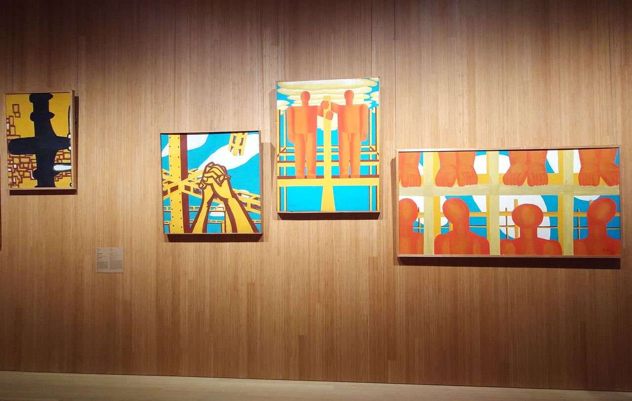 図6 1950年代の作品《ひまわりとジェット機》《愛すること》などの展示風景 (撮影:本阿弥清)